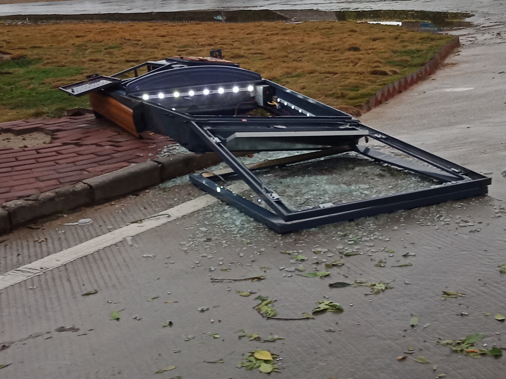 不单下冰雹,还狂风暴雨,吹倒树木广告牌箱电线杆,还有多处水浸,