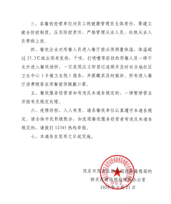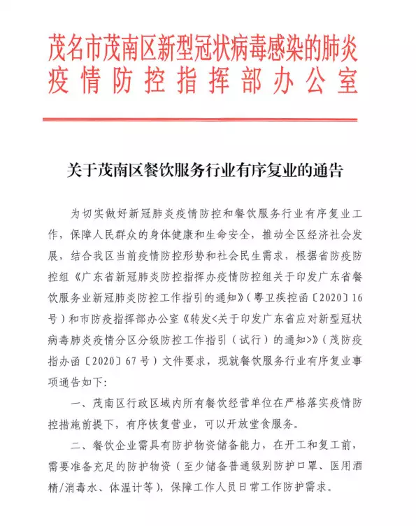爆料 茂名:茂南区发出餐饮服务行业有序复业的通告 (1人在浏览)