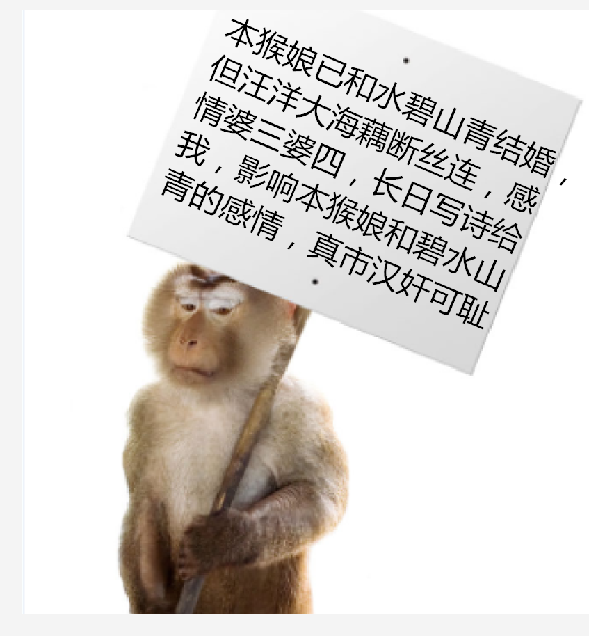 重大新闻啊,猴娘才貌双全和水碧山青结婚,市本年度论坛重大喜事啊,汪洋大海原来市第三者啊。呵呵。猴娘举报汪洋大海写诗勾引罪有应得啊。