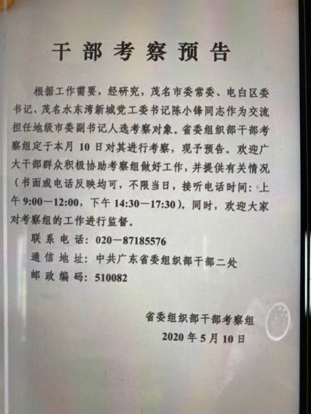 新闻 干部考察预告,陈小锋交流任地级市委副书记 (5人在浏览)