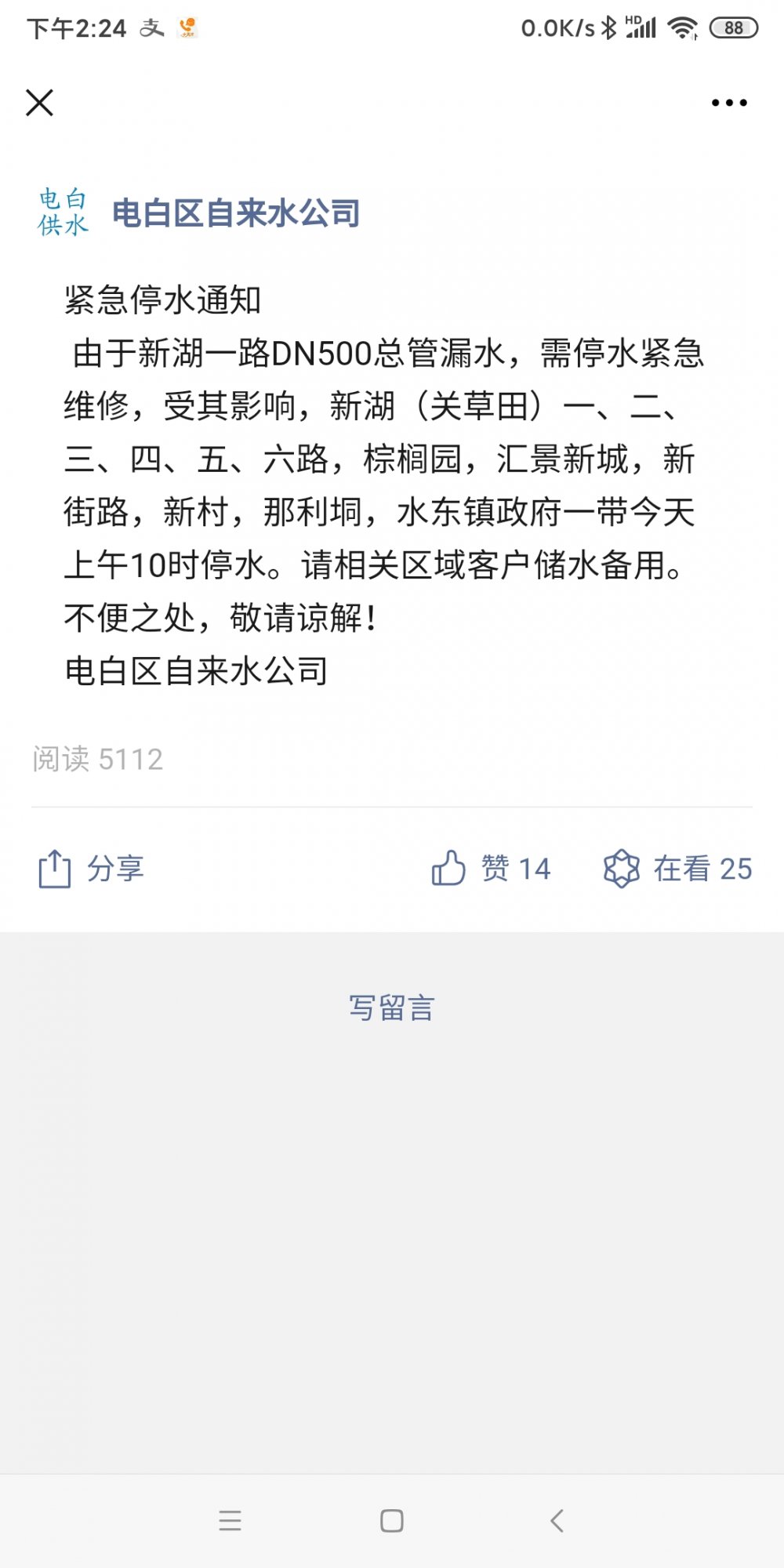 停水很快,何时恢复供水没脸说了吗?今晚还是明天,后天。。倒是给个恢复时间呀。
