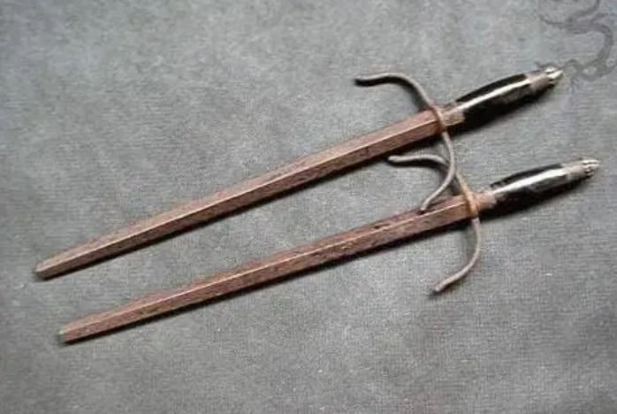 你这东西一般人用不了。铁尺,过去我们这里很多人家都备有一对,看是简单,就一根方铁条加一护手钩,小时候拿来玩过,沉甸甸的,就大约人的掌到肘这么长。据会用的人说,这东西很好用,可以藏到袖里,刀砍的时候,用铁尺隔着用手骨挡,拿出来打架,护手钩可以锁刀锁枪,当然锁不了你这把。打人可砸可捅,铁尺尾部虽然不尖锐,但也很细,可以捅入肉,伤害更大。