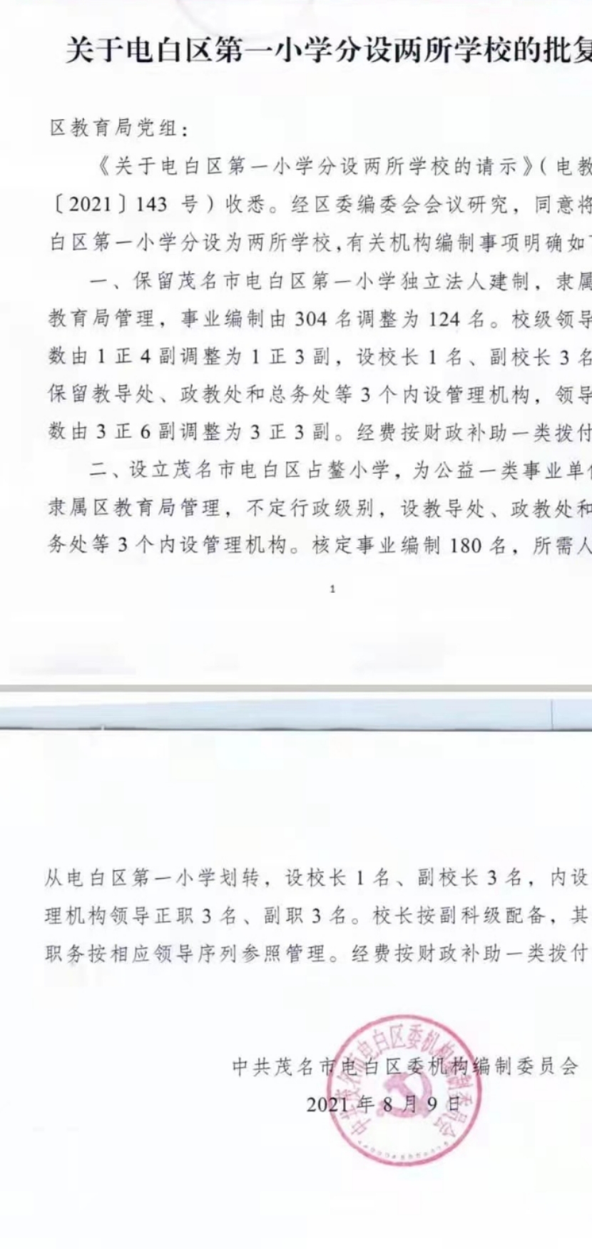 讨论 电白一小新校区改名占鳌小学