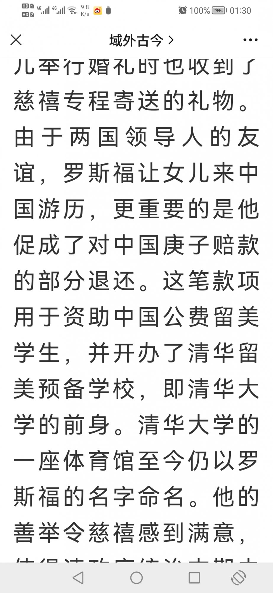 微信搜索截屏,西奥多•罗斯福跟庚子赔款返还,源自《域外古今》