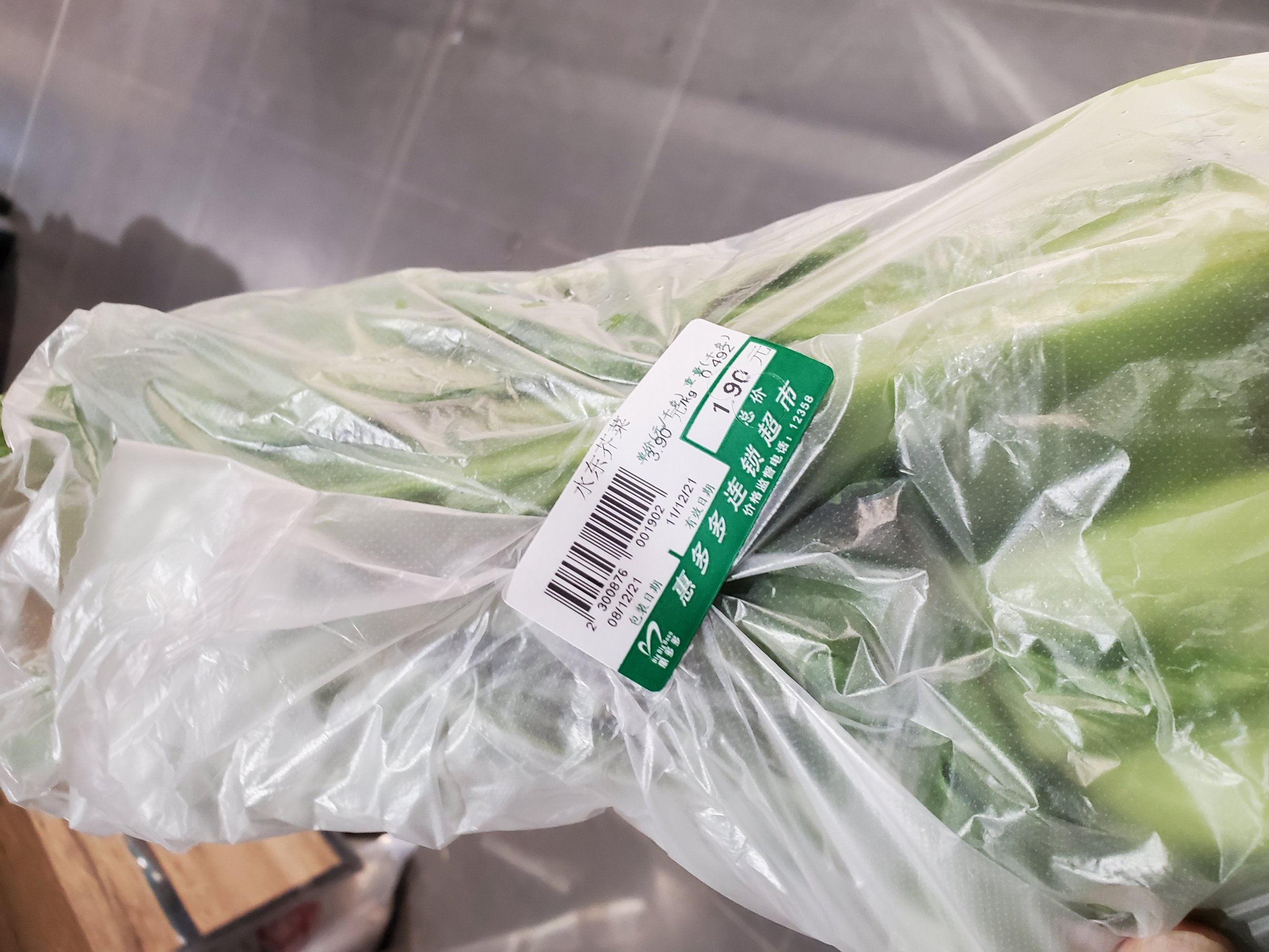 水东芥菜更便宜些,选了两扎鲜嫩嫩,水灵灵的,支付1.9元。