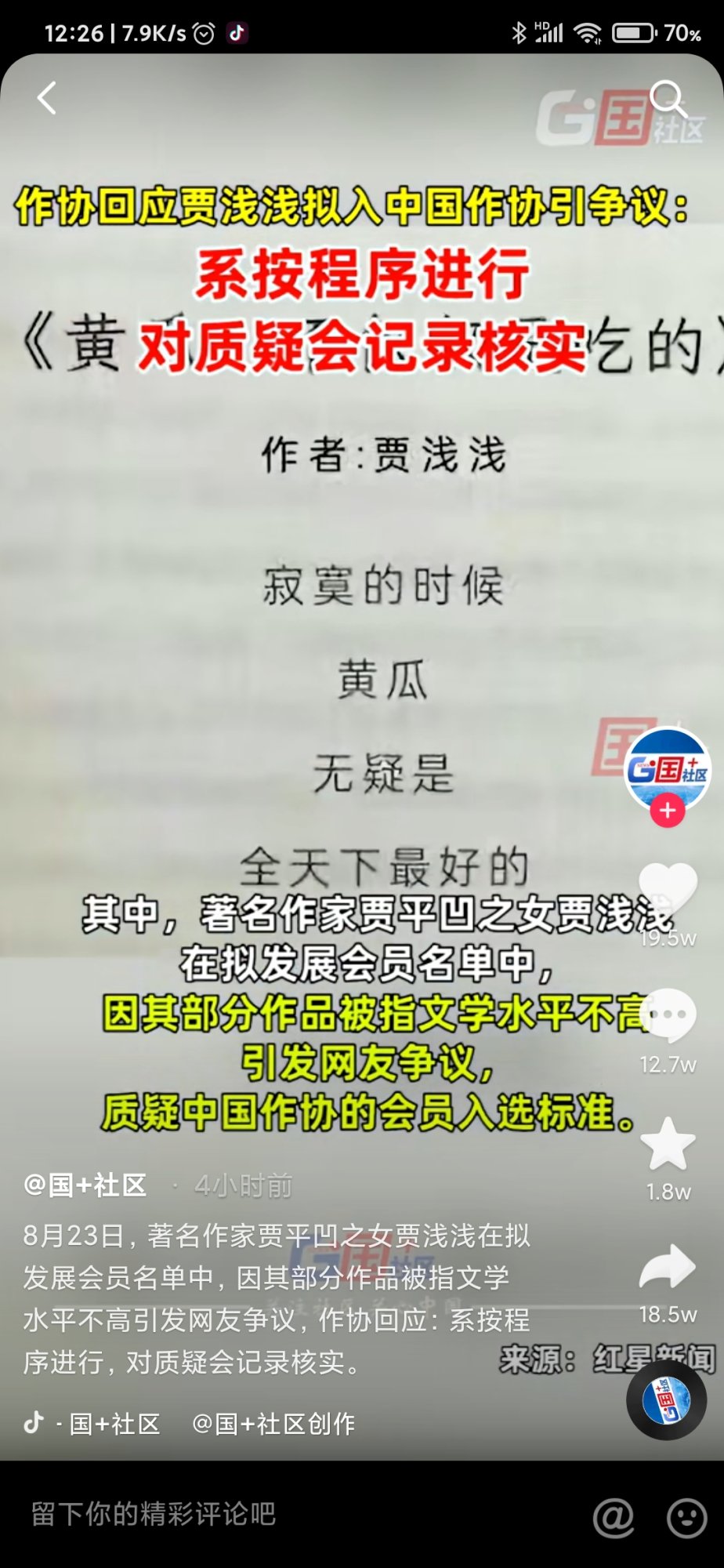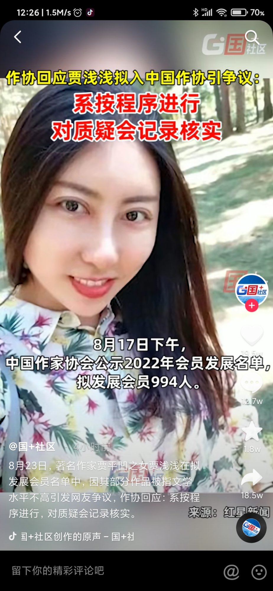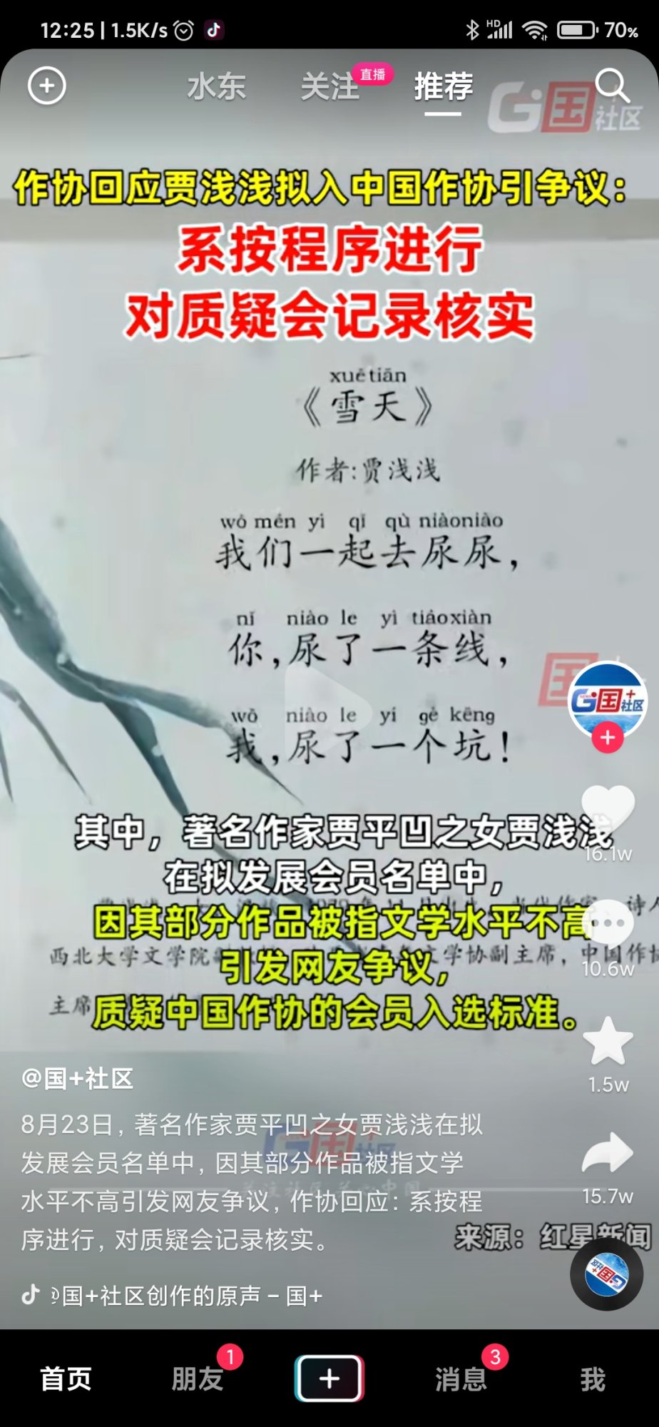一笑实话实说: 贾浅浅是在五星级卫生间拉的尿,所以给作家协会装进了酒瓶,老汪经常在西湖角拉尿,那股骚味各位已经习惯了。虽然西湖社经常跳出来说这说那不符合卫生,但大家总是默默无言,心知肚明自已经离不开那股尿的骚味。 我挺一笑好多次了,我就是一笑,至少应该是一笑的马甲。