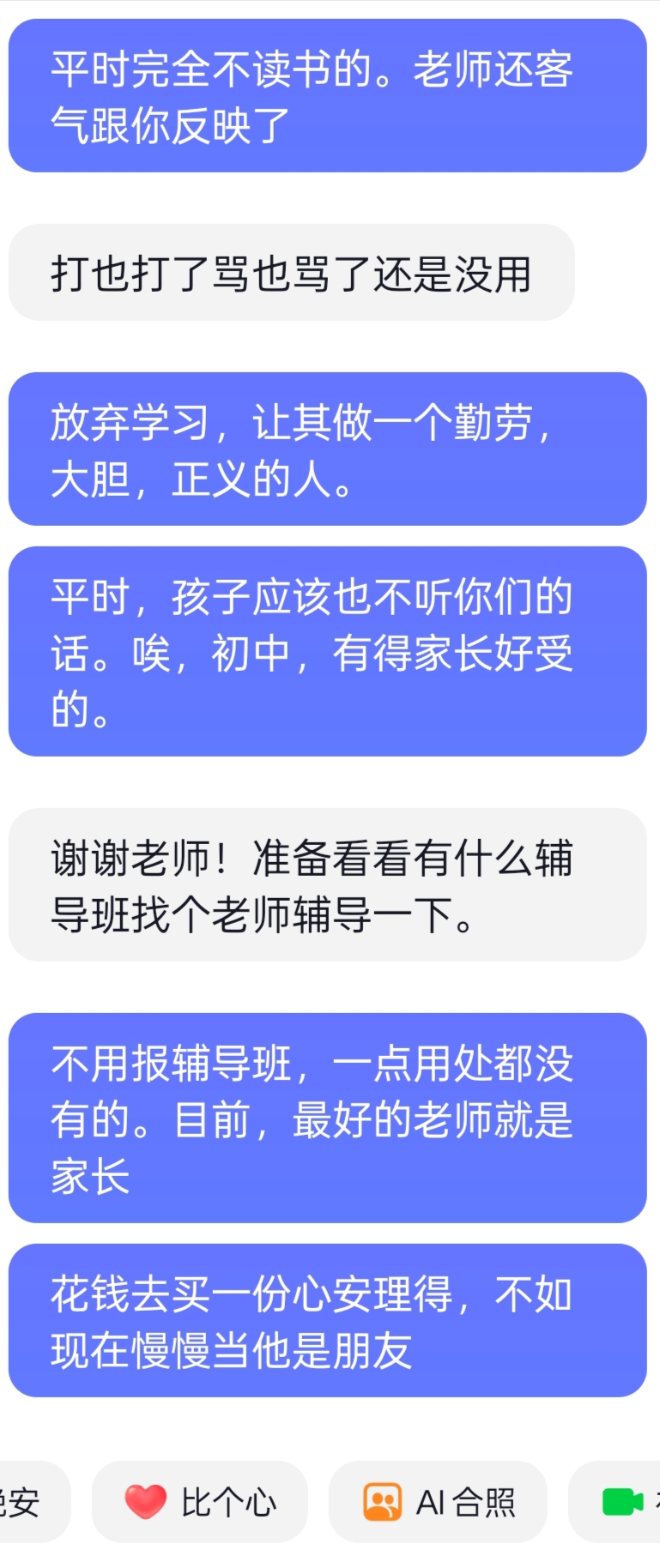 我扯破喉咙说,那些形式化跟教育无关的,大家可以抵制,不去干都行的。可都是驯化了五千年习惯了,包括一些老师,家长,天天抵制洋节抵制洋货抵制文化入侵……抵制质能方程,身边的不良东西,倒是一个屁也不敢放。我懒跟他们说太多,我在他们眼里不是正常人。教得好人家也不会感谢你,少布置作业教得好人家也不会感激你,倒是行来行去类型的孩子若成绩不好,那些愚昧的家长就会背后乱说。