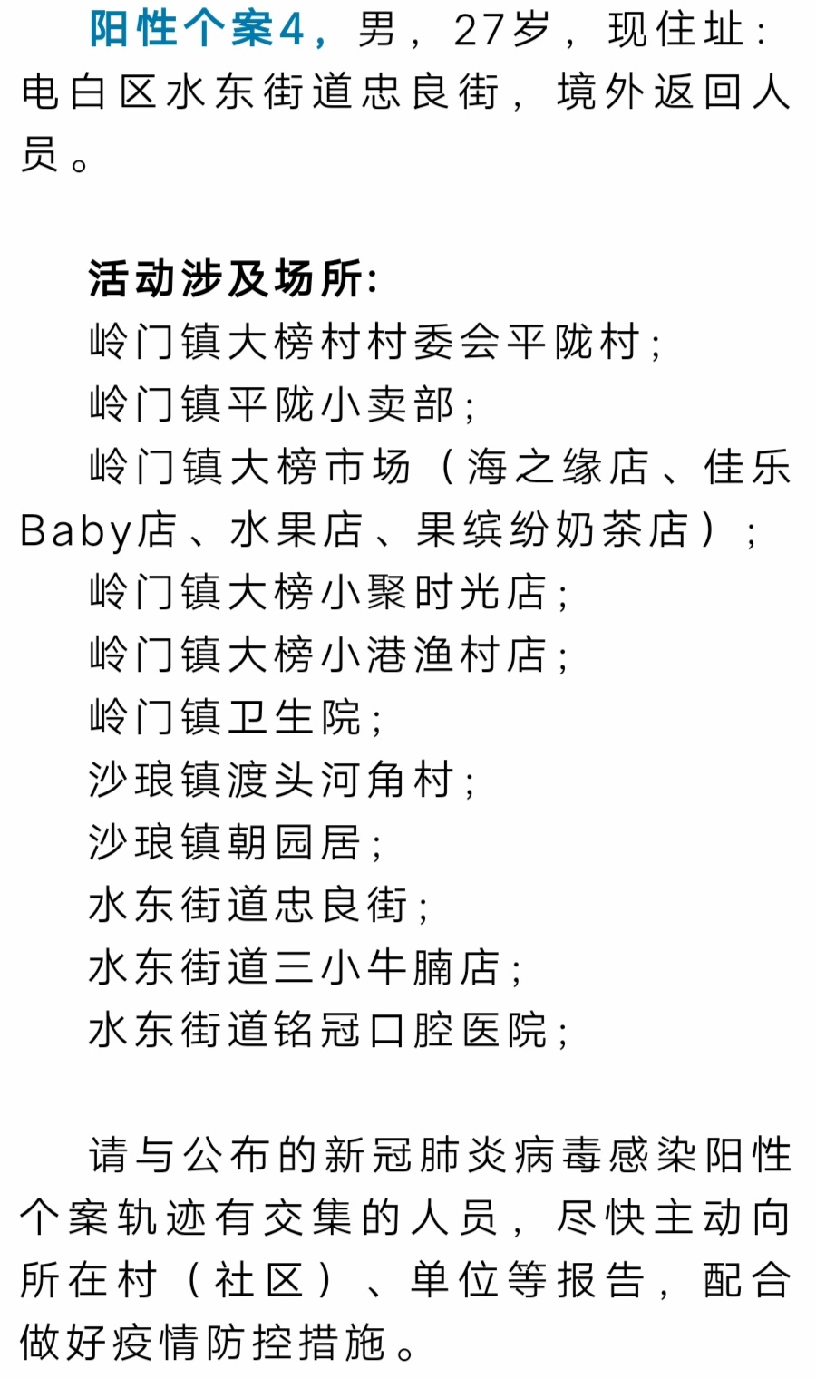及早预警,及早预示,及早摸排,及早发现,及早处置...,盼望大家能配合与谅解!排除降低社会面,期望能早日清零,最好零增长?或增长与风险降至最低,优化二十条,尽可能用心用情减少对民生、经济等等领域的波动...电白是福地!说得虽然有点打鸡血,好像有些年了,但还是说声电白加油! 您的浏览器无法播放此音频。