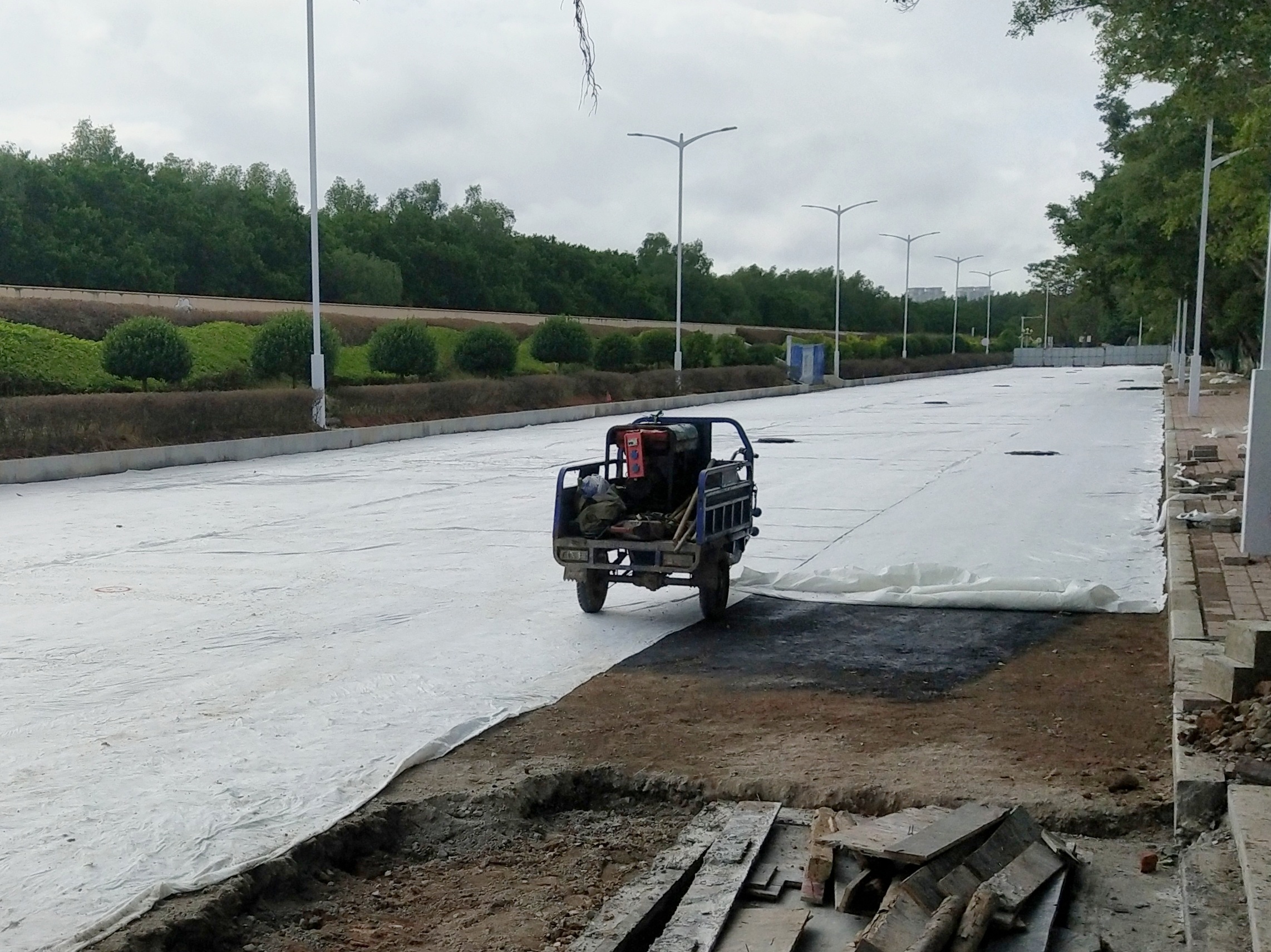上次海堤路刚铺好沥青,我见有其他车辆开始通过了,我也跟着开过去,结果一路都听见飞沙走石的刷刷声,一边开一边感叹这沥青是不是还没干,结果后轮车壳上面真的粘了很多沥青碎,直到现在都扣不下来。所以还是等一两天再走比较好。