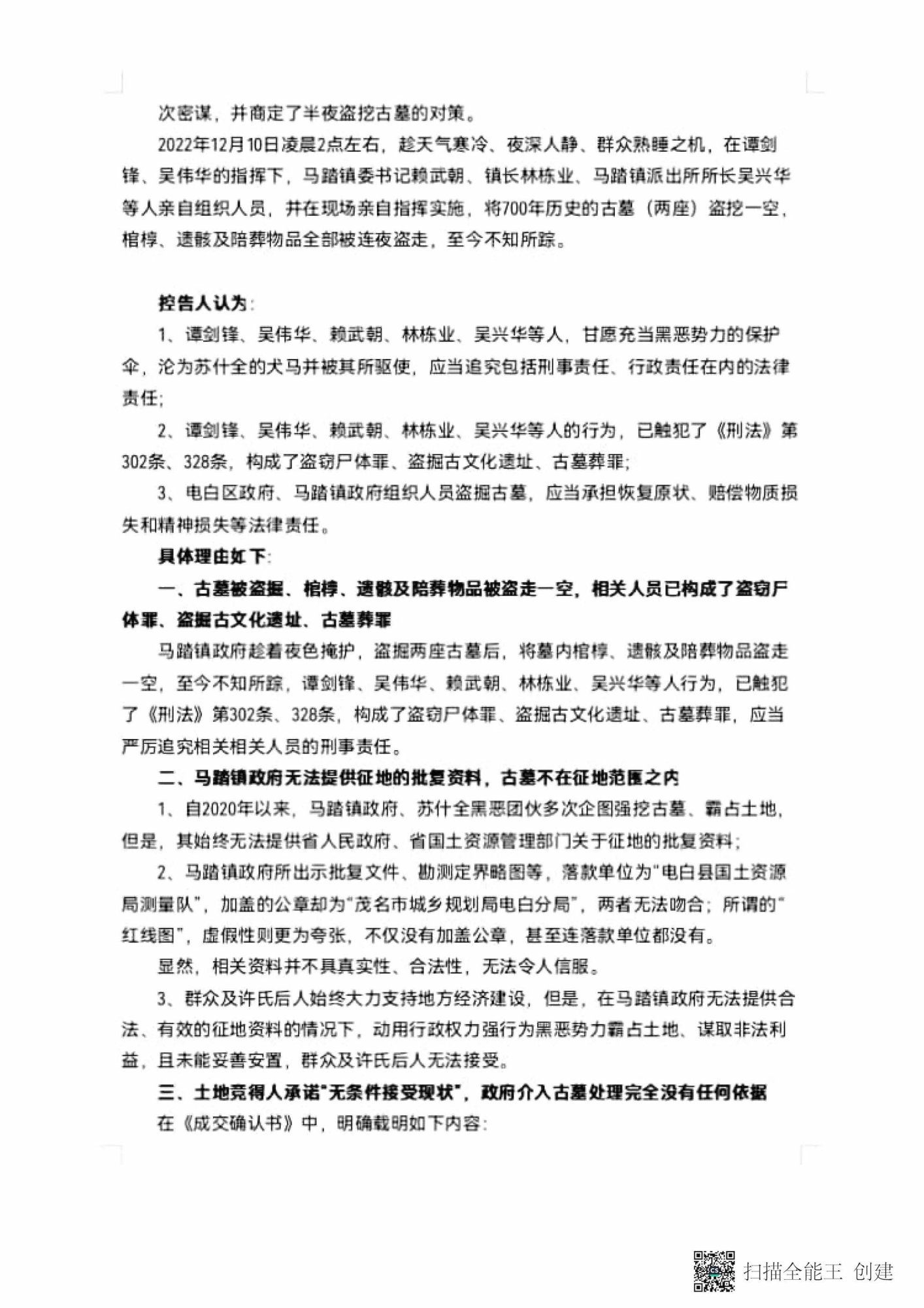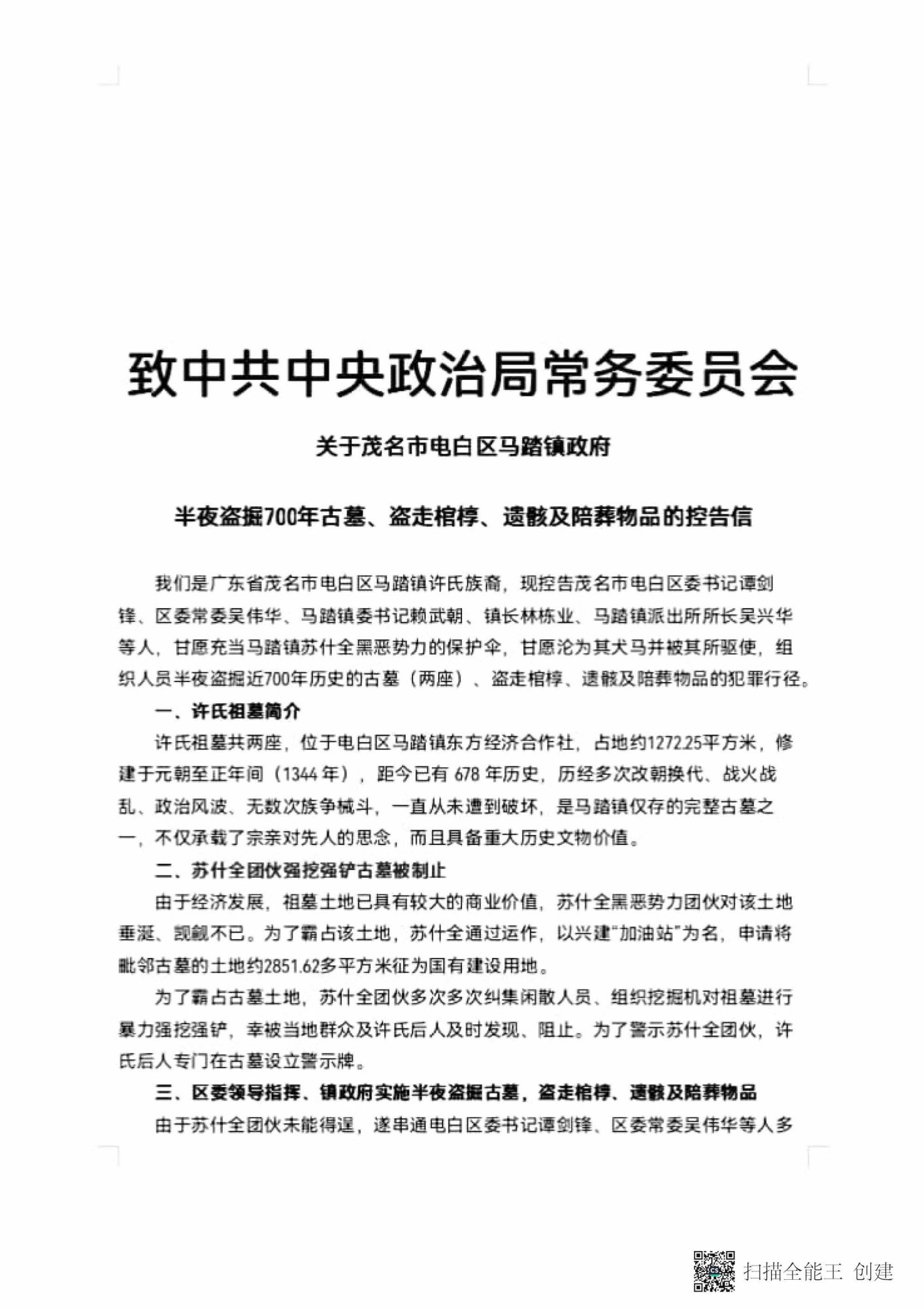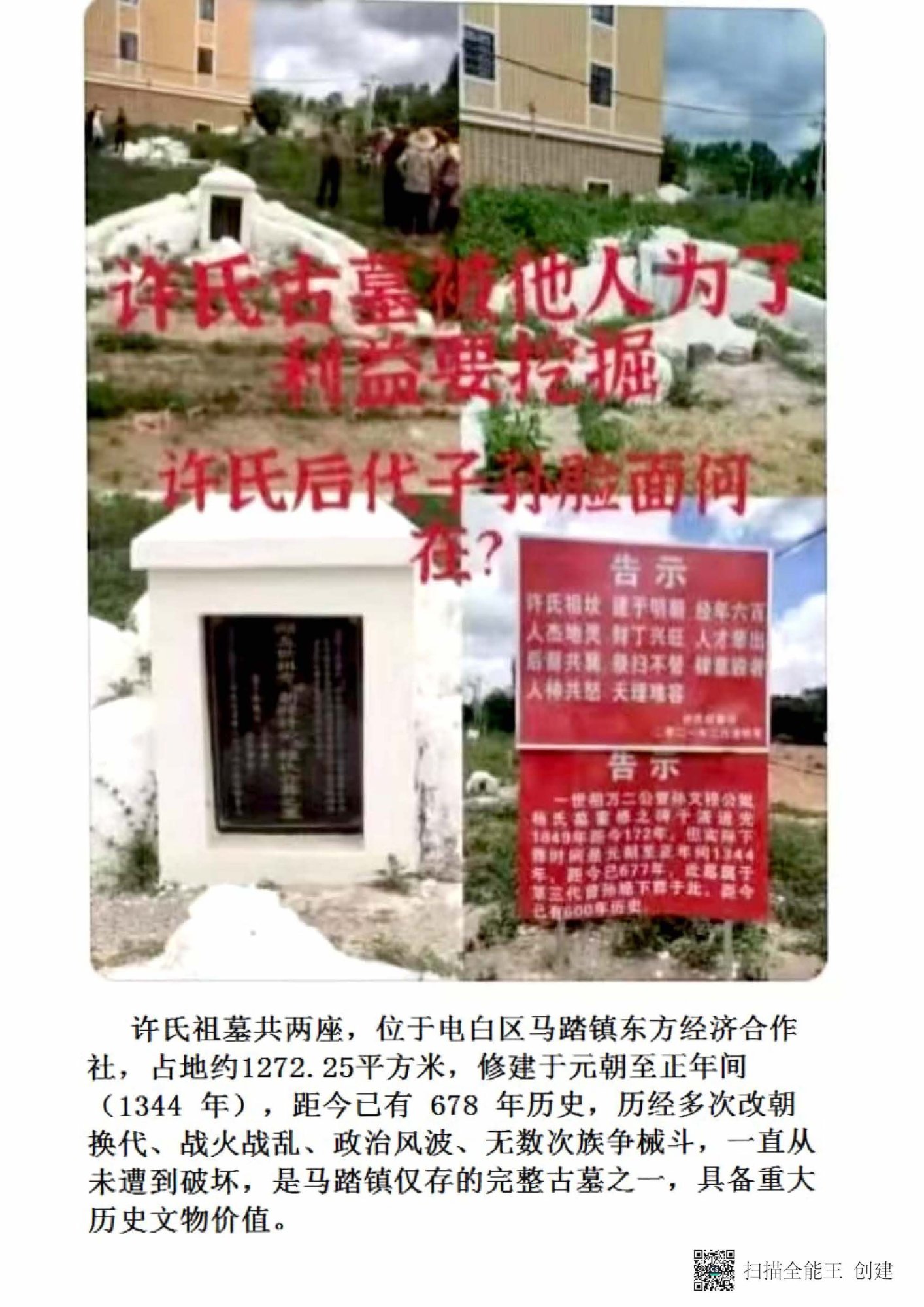 广东省茂名市电白区马踏镇政府的部分公职人员深夜盗挖许氏族人近700年历史文化遗产祖墓: