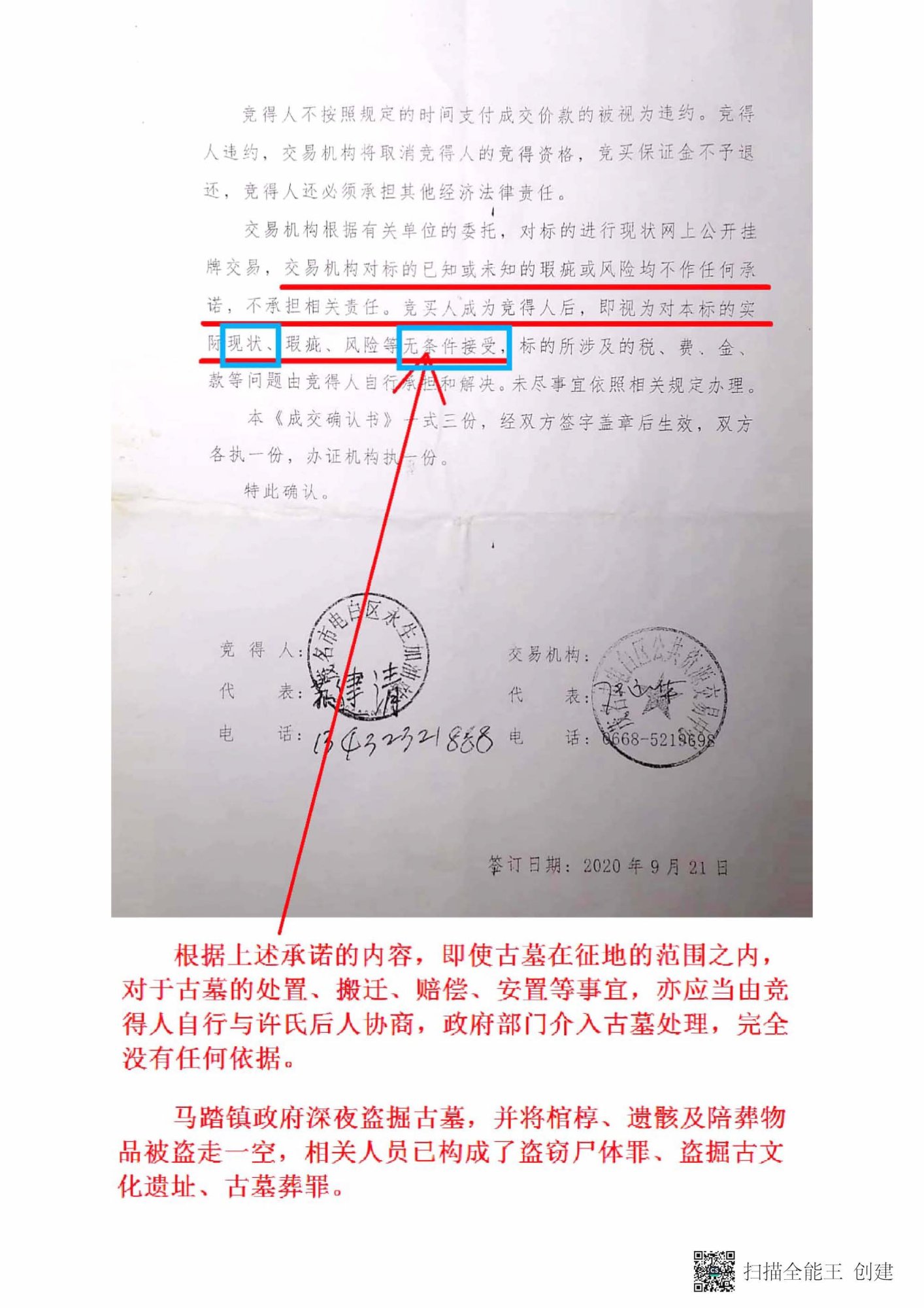 他们官黑勾结转为国有土地后以500万元一亩的价格左手倒右手的方法卖回给马踏黑恶势力头目苏十全,这是一起官黑勾结破坏许氏族人祖墓的行为,政府卖给苏十全是2851.25平方米,可是现在霸占实际使用的土地面积是5700多平方米。