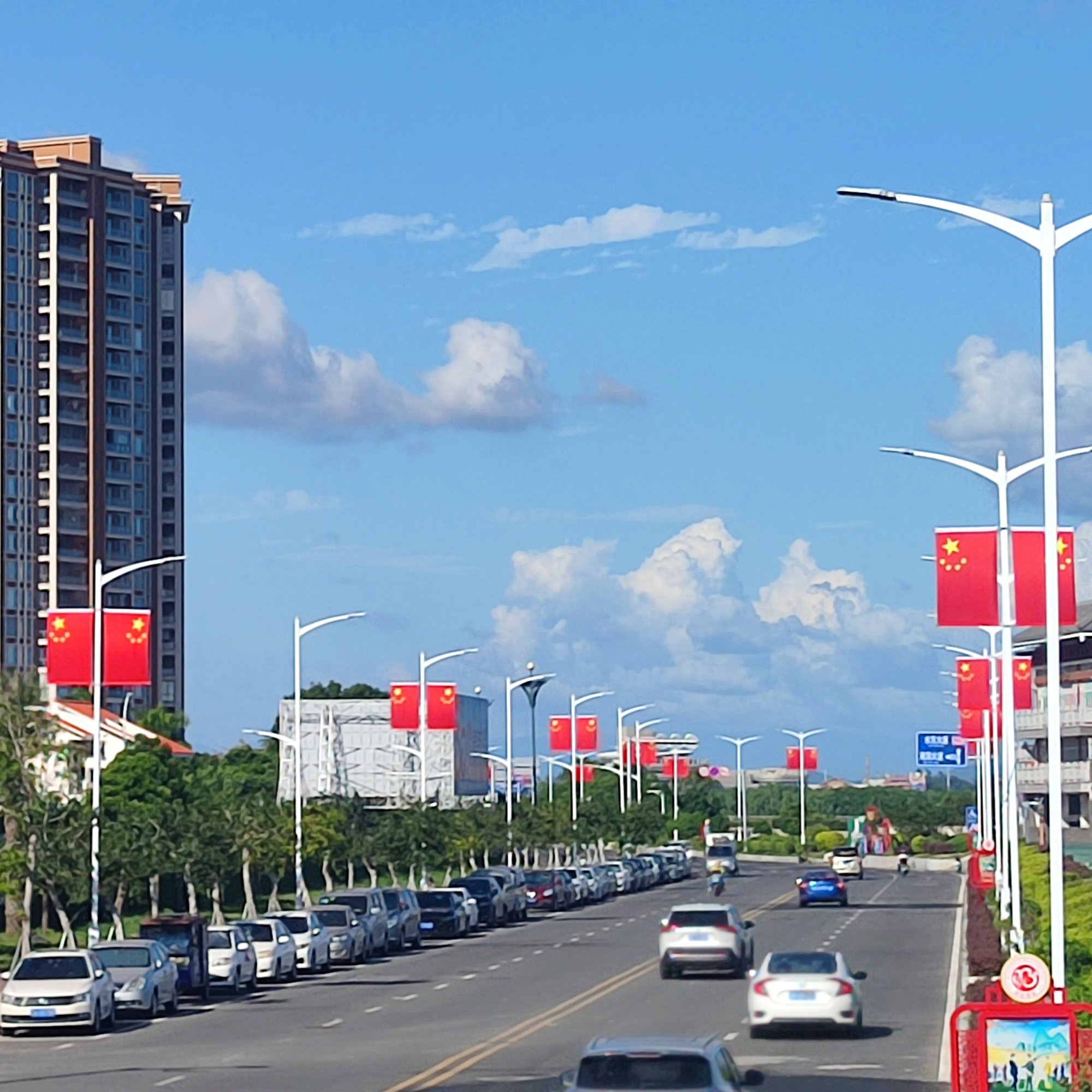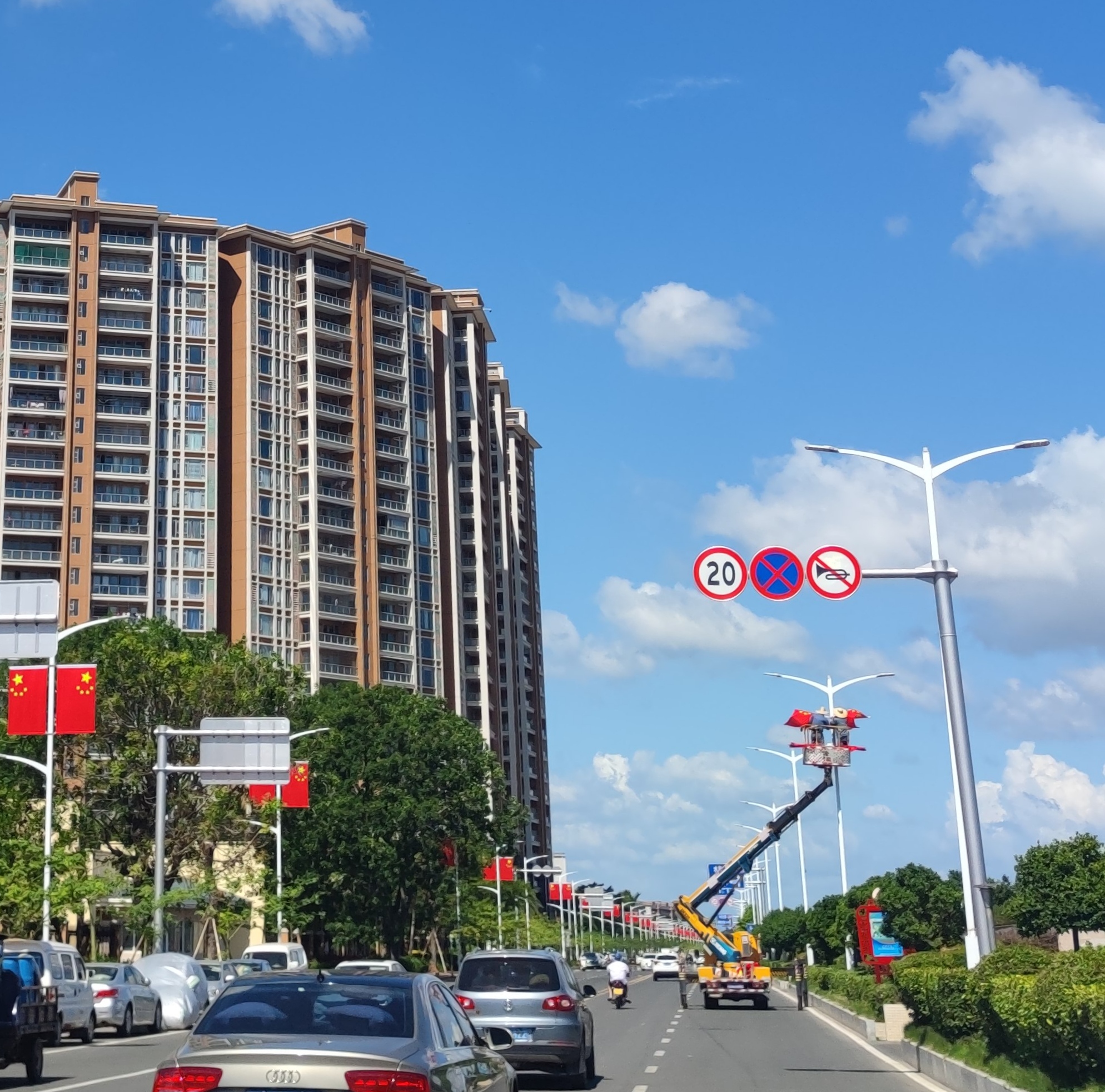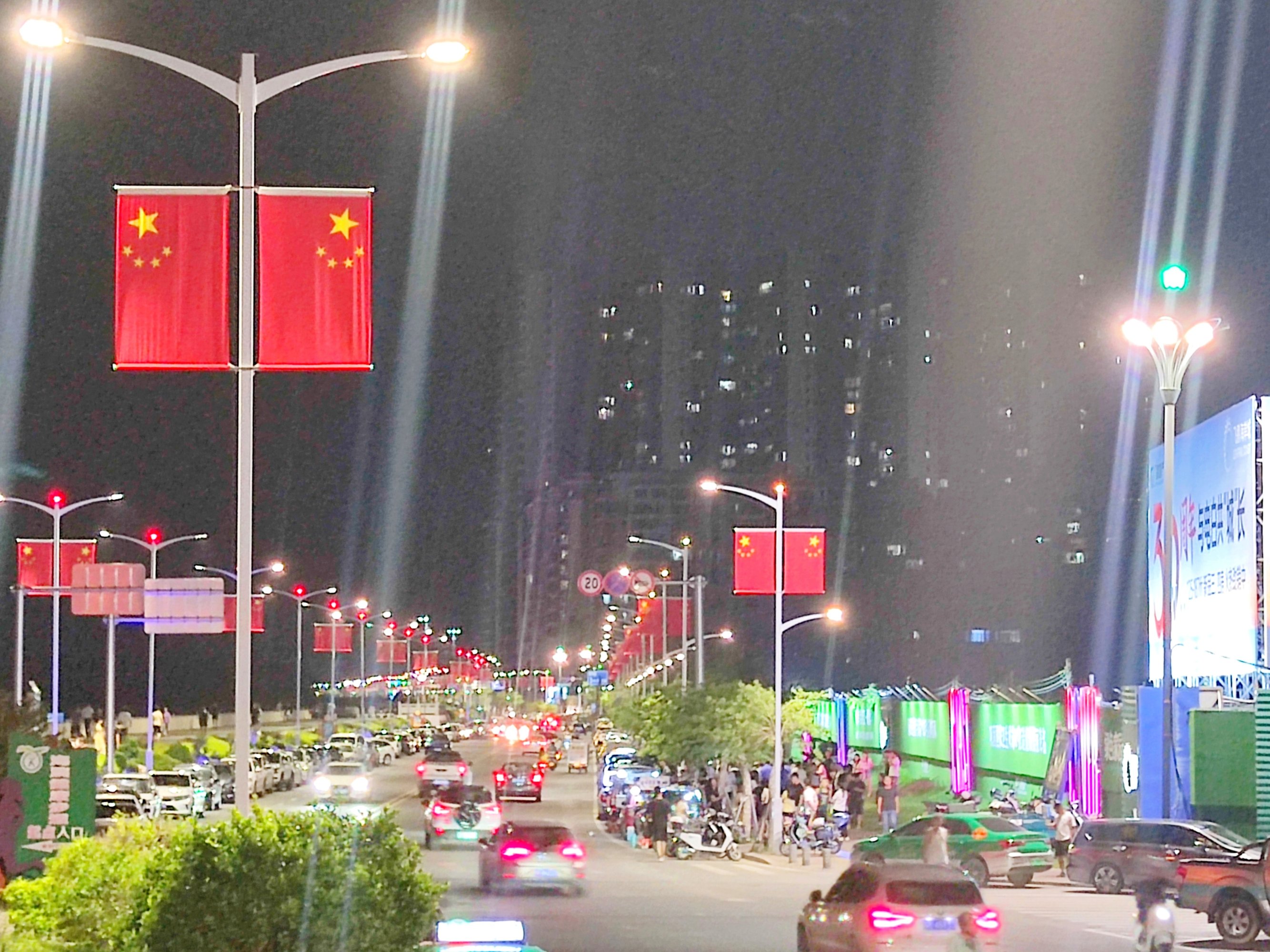 因为在大搅雨水分流的排泄工程~还是其它…给群众带出行等等带来不便…所以拍的时候也不好看,很容易拍到些施工场景还有些树木挡一下,望解…好像暂时装了迎宾路海滨路与海堤路小段…