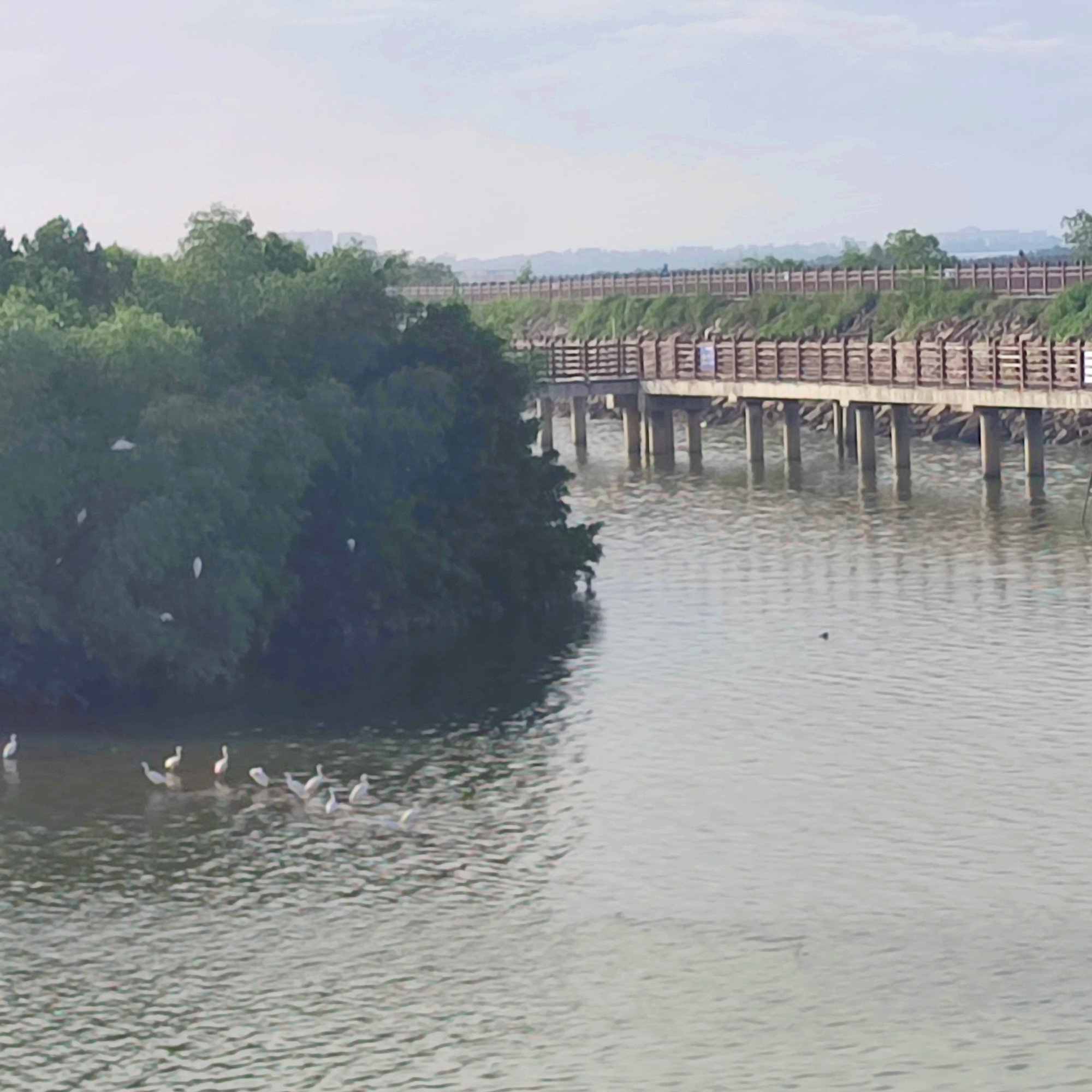 其实那个什么观鹭阁这边的排水出囗下面,清早有时也有好些白鹭等鸟类在飞来飞去嬉戏觅食等等…