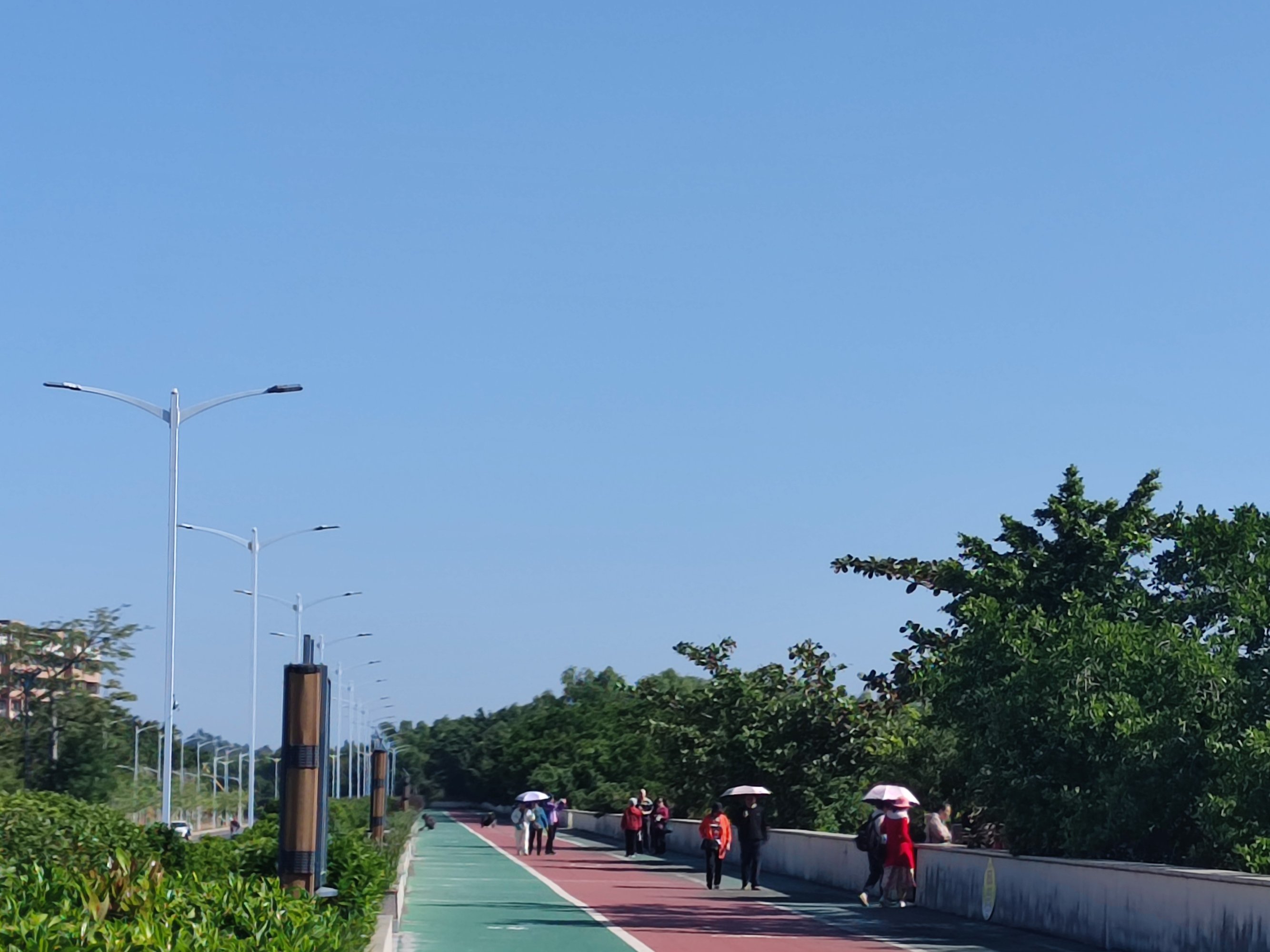 或许在这个位置下来,再走过海堤路的人行班马线,上到步行绿道,向着栈道方向漫步前进…