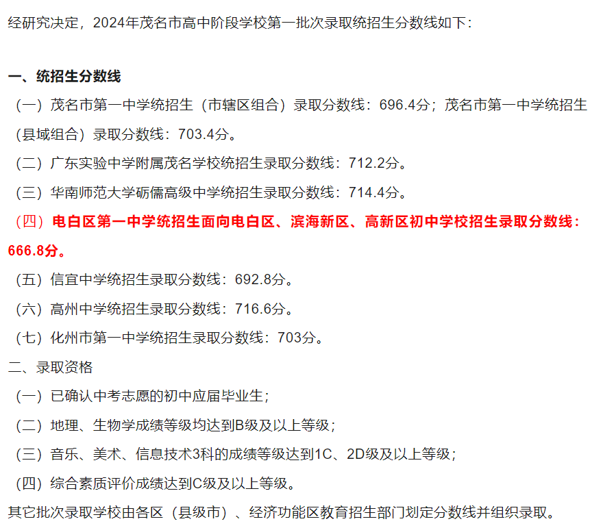 电白一中分数线是最低的,而且民办提前录取后电白一中才能录取!