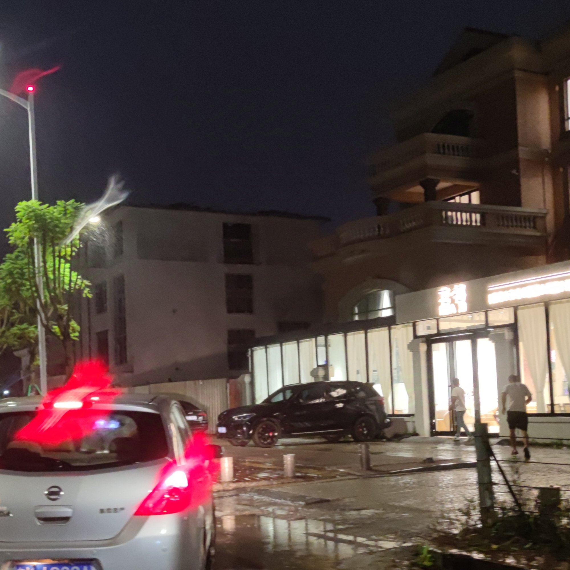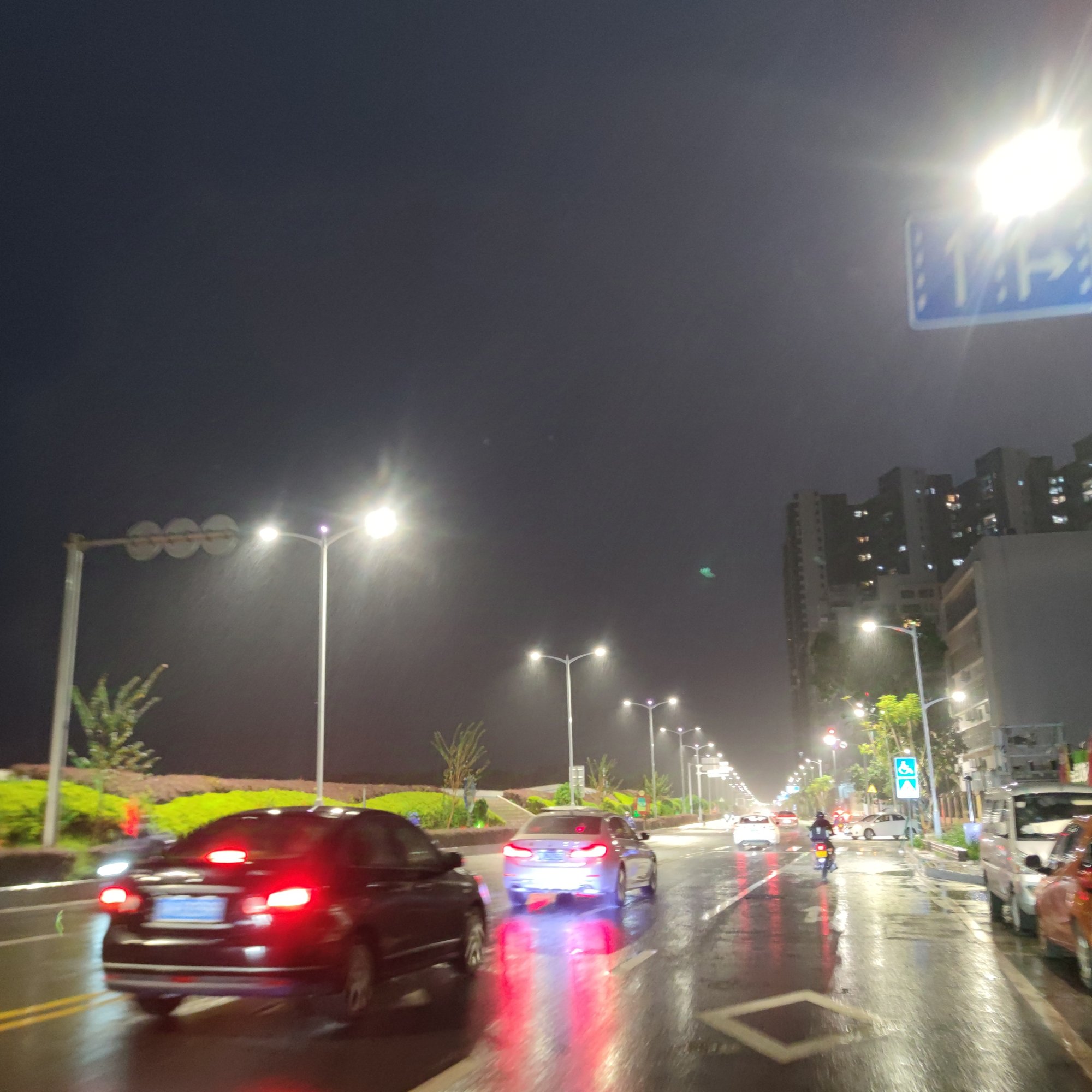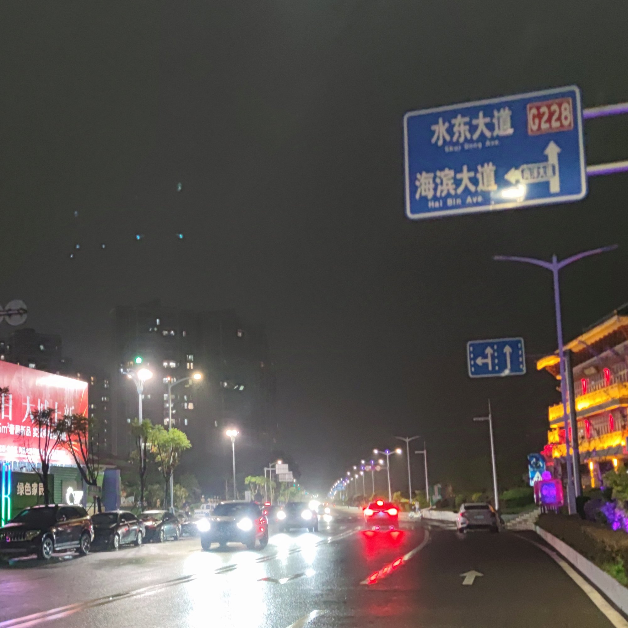 海堤路还有零星的车来车往,而行人相对来说少之又少了,而较早前还见有零星的极个别的开着铺~,而时间的推移,还是归于寂静,而走过靠近东湖这边的路边叫什么花X的室内店,见有不少人在里面~,而雨珠在灯光的照射下散发出各种颜色~