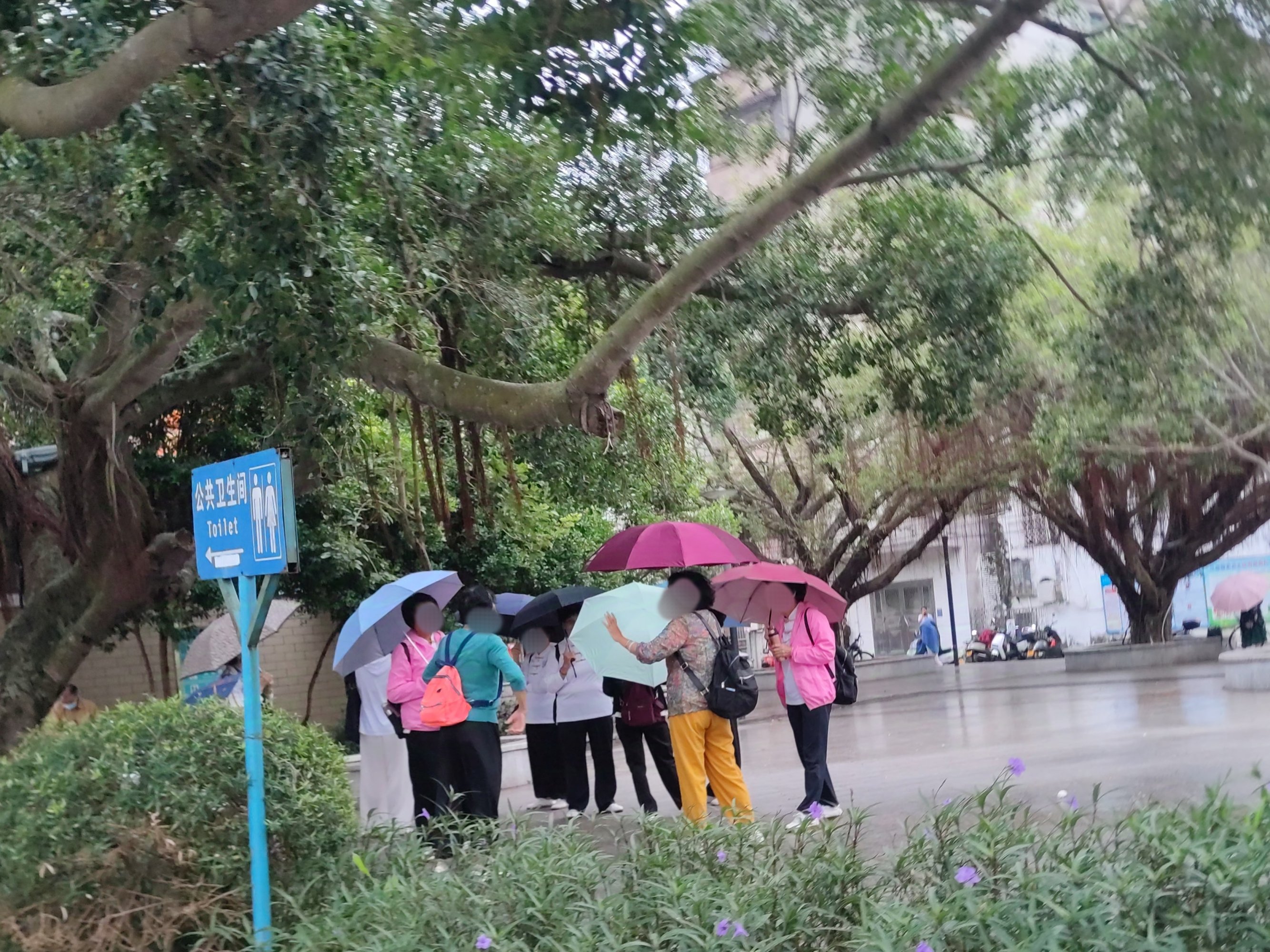 而随着雨势,下面的有些己拿出雨伞遮雨了,但依然没离开,而下面这些的进入亭子里了~