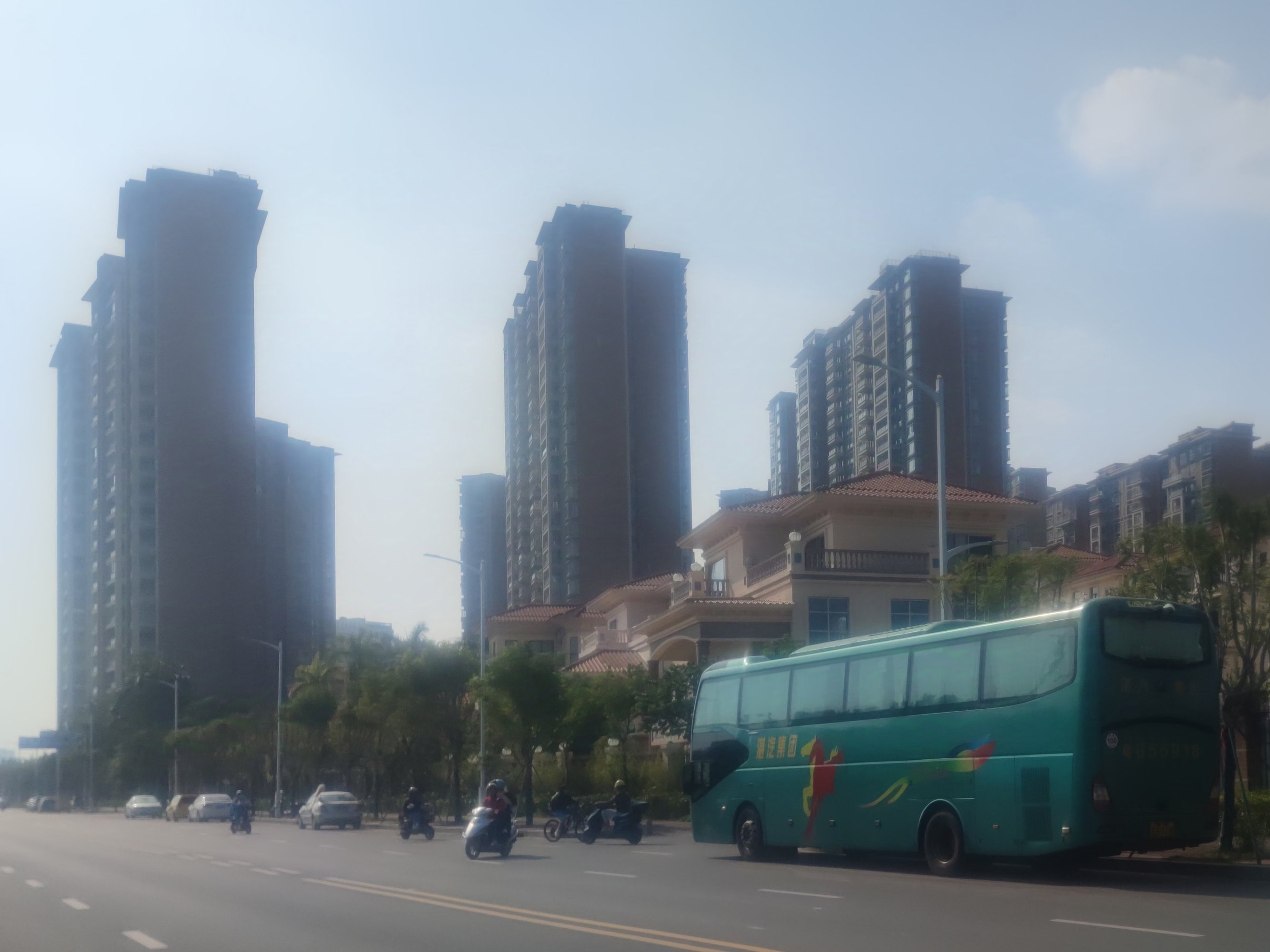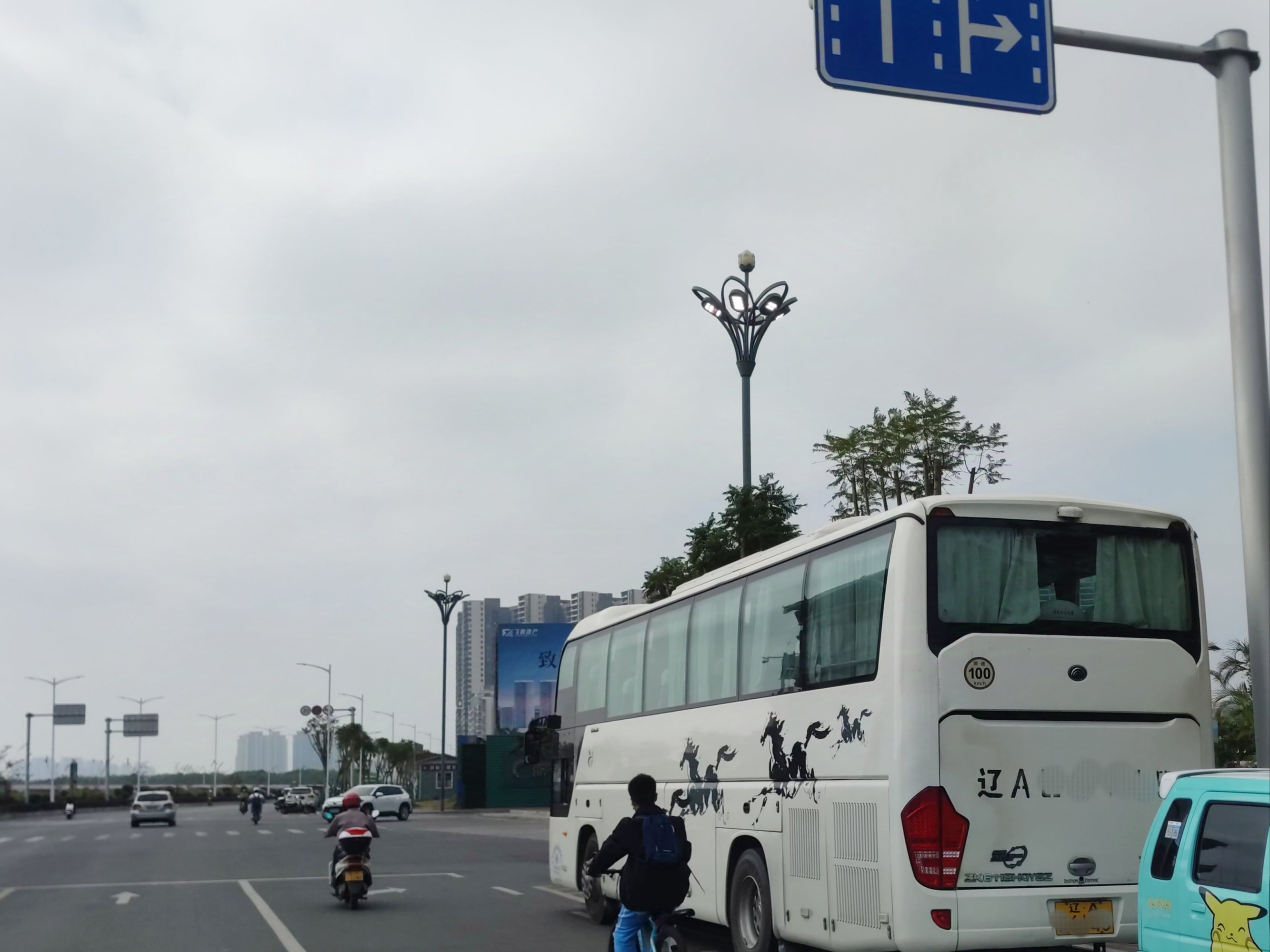不知辽A那边的气候如何,而这边早睌虽有点冷,但中下午阳光照射下有点热~,而我想看下大游巴走向?尾随时,无奈于两轮电鸡追不上六个轮的大巴车,也就早寨头交通灯处,不知辆向哪去了~?