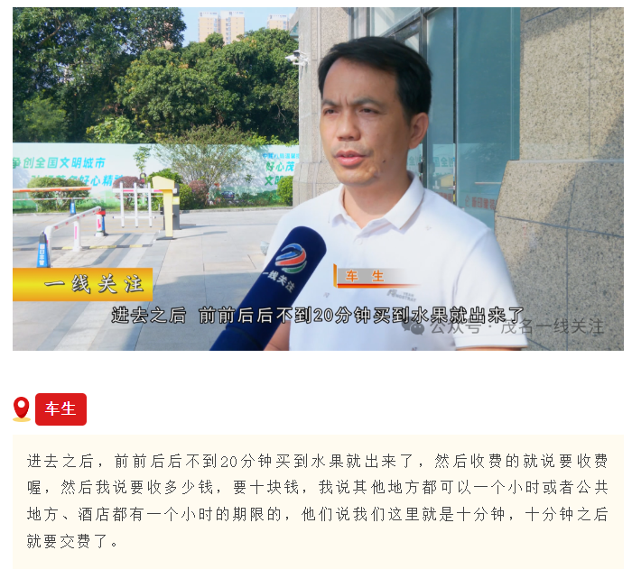 上个月到茂名粤西农批,我入去都仲未够10分钟,出场就要收我10蚊鸡,其实农批调整车辆收费价格我系知道噶,因为我都是经常过来D边采购,但今次真系激到我好嫐!! 出场果阵个收费员硬系要话我拉佐货入场,我确实系拉佐一箱纸皮到市场比一个老细,但是按照你地农批噶收费标准,纸皮根本都唔系收费项目范围内,唔该农批D员工瞪大自己对眼睇下收费标准,难道连自己噶职责都唔知道做D咩?简直就是滑天下之大稽,所以点解仲要收我车费呢?