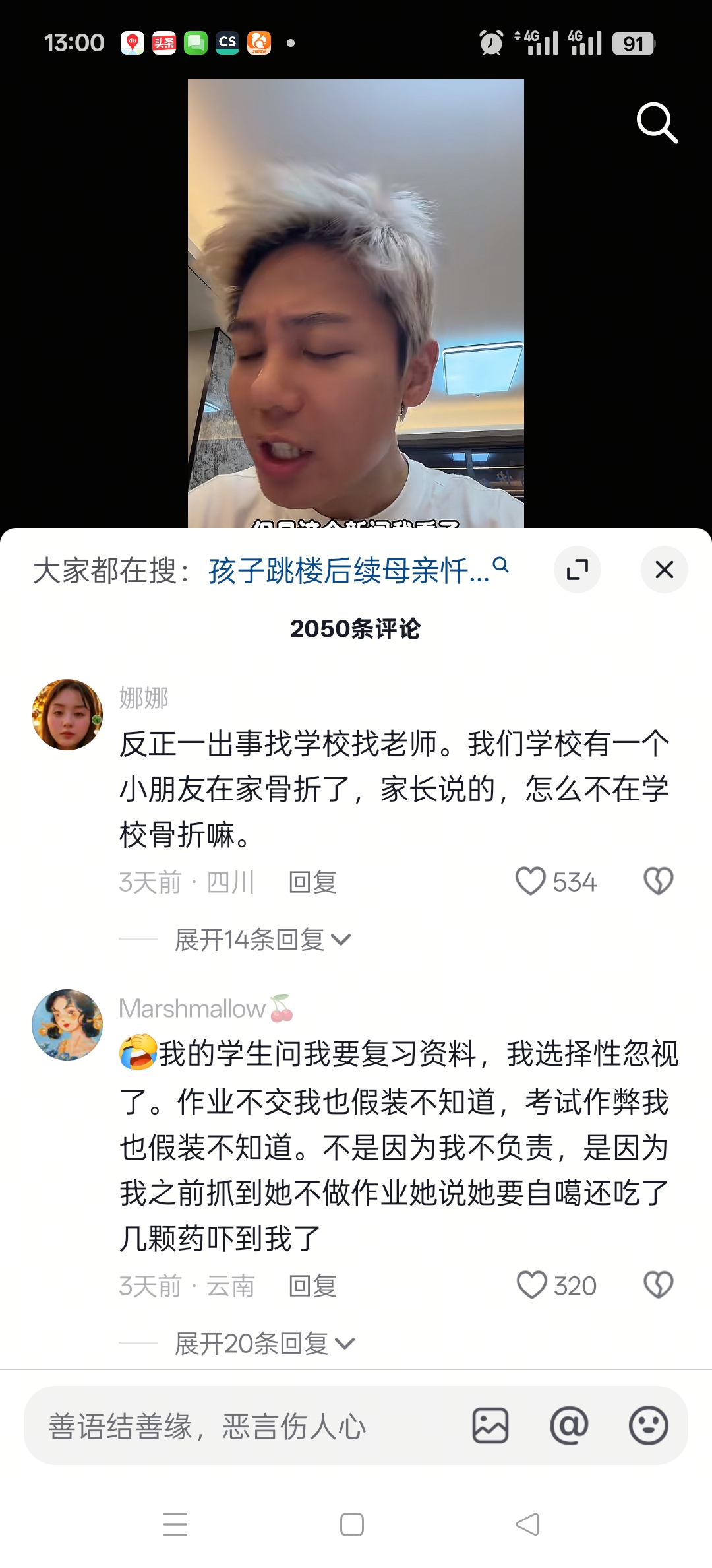 晚安,不是我不行,而是教育这个东西,让我扶差,我真不想扶了。我扶差,那些家长,唉,不谈家长,谈孩子吧……我哄也哄,宠也宠,揍也敢揍…… 一个原生家庭,就注定他们孩子的未来。很高尚的家长我也见过,很丧心病狂的家长,至今我没有见过,目前我见过唯一一个,我一直在想,等我没退路了,我就等那个王八蛋,就是老坛酸菜。