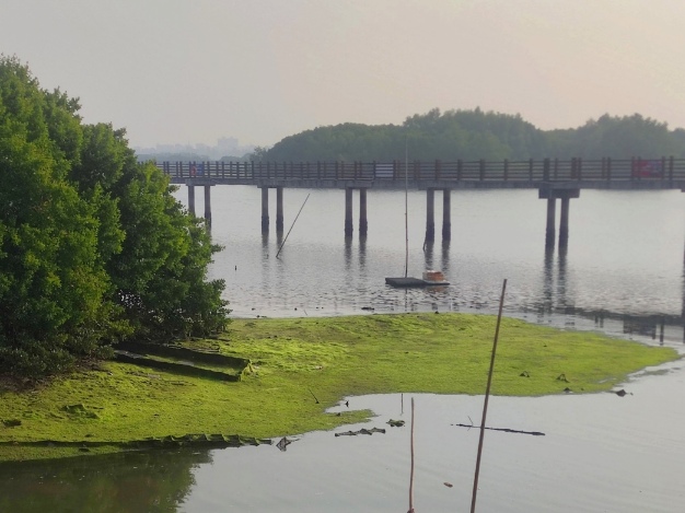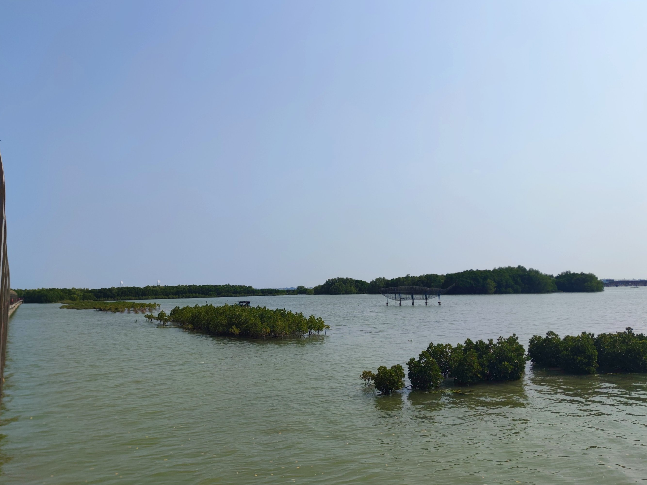 不知道几时潮汐?好像有时早上,中午,晚上~?站立在观鹭阁旁边的步行绿道上与那边的亲水平台等地方,向海面上远望过去~或许潮起潮落,退潮涨潮也会有不同的景观景像~~?不过就算退潮,好像海面上都余留有大量大面积海水?等下个潮涨的到来~? 您的浏览器无法显示此视频。