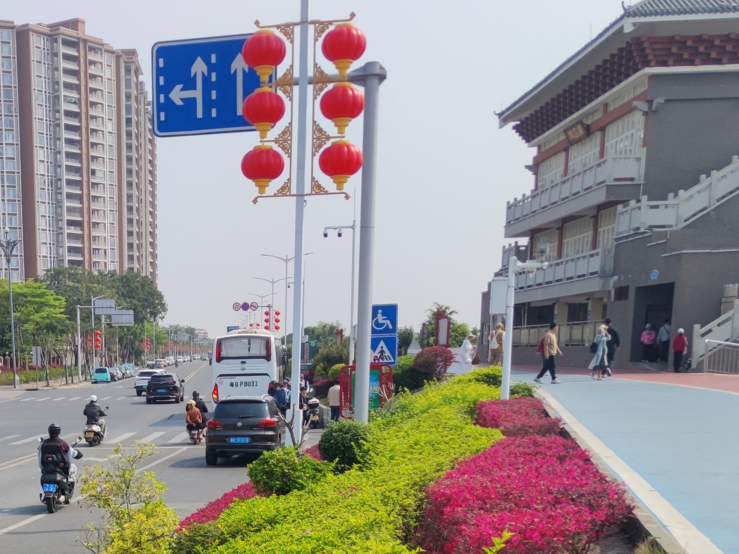 刚巧路过,见一辆粤B的游巴从向阳大道驶过来观鹭阁~