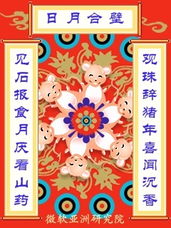 微软对联是由微软亚洲研究院 自然语言计算组 研发的计算机自动对联系统。当用户给定上联,它能够自动提供若干下联供用户选择; 并且当用户确定一副对联后,它还能够生成若干四字横批供用户参考。这一版系统采用了新一代的人工智能方案和统计机器翻译技术,将提供给用户一个专业化的互联网服务平台,提供更稳定高效的 处理能力,更高质量的对联效果,更友好的操作界面,以及更完整的用户体验!你甚至可以生成图片,发送给你的好友。希望大家喜欢他。我们也衷心地祝愿各位度 过一个美好的的春节!