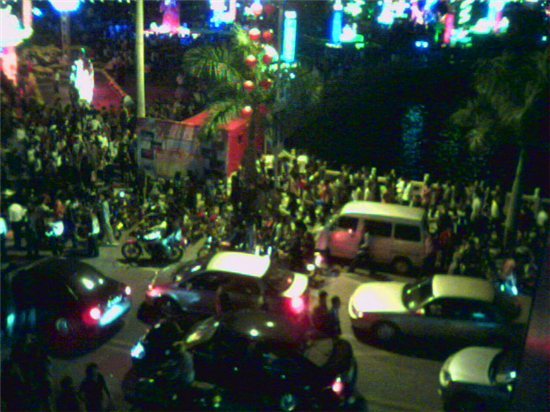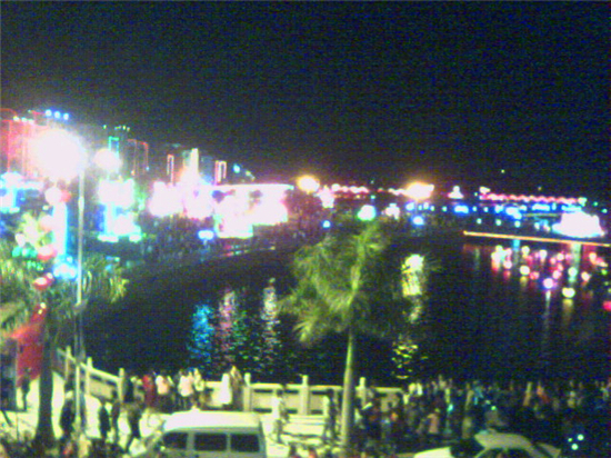 这个是以前某网友拍的水东春节,多热闹啊,可能当年手机不给力,将就一下看看吧。