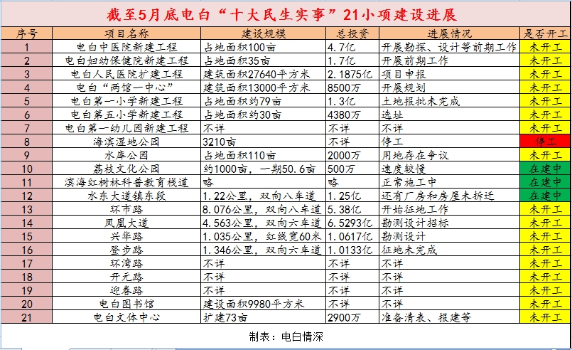 半年即将过去,电白“十大民生实事”21小项新增开工项目数量竟然为0!