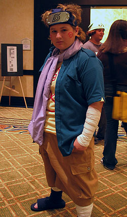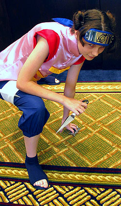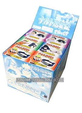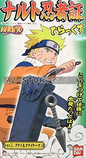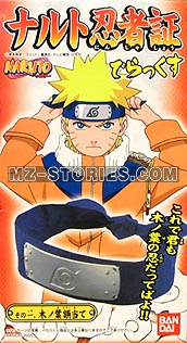 2005年BANDAI出品,精美纸盒包装,内附糖果一枚,全4种,包括木叶护额、苦无包、护肘、 鸣人专用睡帽一款。此次的忍者证又让人耳目一新,新的木叶护额全长有90cm,完全按照人物的头部比例,这次的标志设计采用了pvc,戴在头上不会变形;腿部武器包的设计也按照真人的腿部比例,可调节的绑带设计可以牢固的系在腿部,而且里面还带有一个苦无,物有所值啊;这次的忍者证中又加入了左助的护肘,直径有23cm,同样的可调节设计,让胖瘦不同的你都可以cos哦;这次更让火影fans们惊喜的是漫画中鸣人睡觉时带的可爱睡帽也隆重登场,直径足有55cm