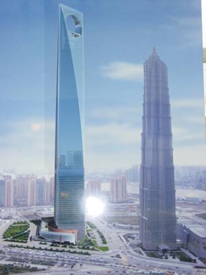 高492米,101层的上海环球金融中心(Shanghai World Financial Center),据称该楼也对世界第一的宝座虎视耽耽,建成后将顺利摘取摩天大厦NO。1的桂冠!