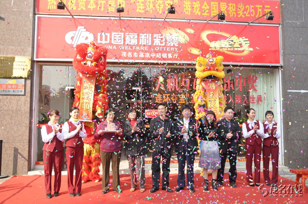 与此同时在新福销售厅的张先生(化名),则是 “中福在线”的忠实彩民。当晚7时许张先生到了新福销售大厅1号机娱乐,他玩的游戏也是连环夺宝,在进入到第三关时,拍出24颗红宝石。张先生高声大喊中了25万,在场的彩民纷纷围过去观看,为他欢呼,送上祝贺及掌声。