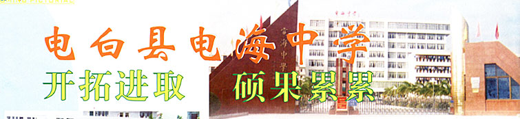 电海中学位于电白县城广南路,创建于1986年初夏。2001年6月被评为广东省一级学校。2002年2月被茂名市定为国家级示范普通高中创建单位,力争2003年底通过国家级示范普通高中的认定。学校校园宽阔,占地230亩。环境优美,2000年被评为茂名市美丽校园。现有62个教学班,在校生4300多人。