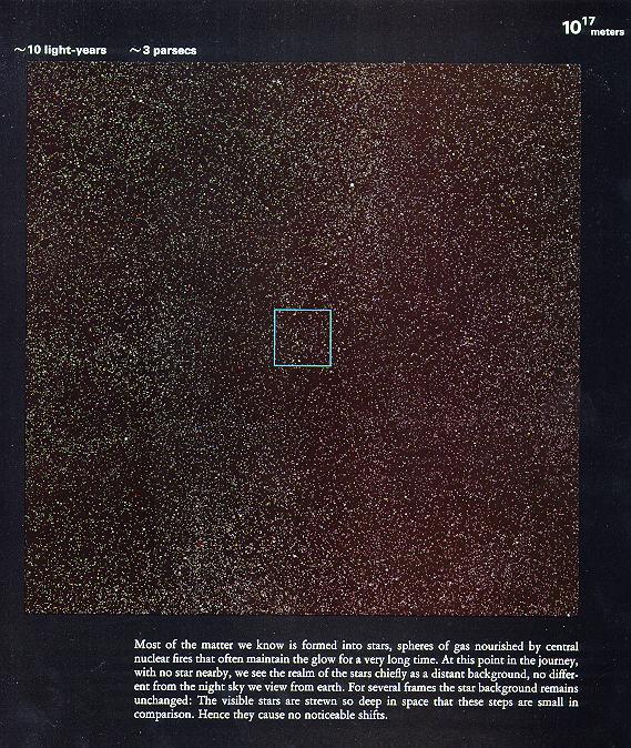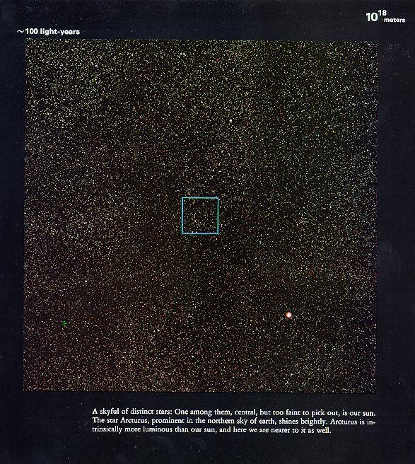 现在我们把视野缩小10倍,宇宙看起来还是空空如也,“星”光点点。可是,那些点点斑斑的真的是星么?