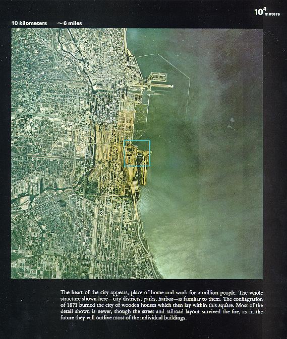 不看不知道,世界真奇妙。芝加哥鸟瞰。并由此开始了我们人类所能够理解的数量级,开始了我们熟悉的世界。