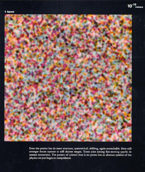 质子(也可能是中子)的细部,乱七八糟一大片。未知的结构,未知的领域,那里属于上帝。