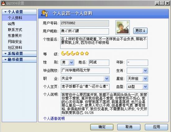 啊Ben 晨_光_飘_藐 荣誉会员 注册 2004-11-04 消息 3,150 反馈评分 1 点数 61 2005-02-25 #79 我的另一个QQ 附件 3245465123.jpg 9.4 KB · 查看: 412