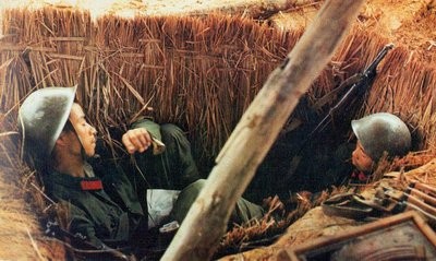 1984年4月28日, 老山主峰。对越反击战时期,经过3天的激战,终于拿下了这个山头。插旗的时候,战士已经牺牲了。如果您看过美军在硫磺岛战役中插旗的照片,您会更加感受到中国军人的伟大。虽然一个鲜活的生命已经结束,但他那不屈的身躯带给人们的不仅仅是震憾!更是一个民族永远不可战胜的意志!