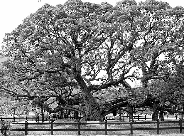 榕树,这种古老的树木,在我的脑里甚至骨髓里都留下了极深的印象!对它对一种说不清道不明的特别感情!也许是童年和少年都生活在它的树阴下的缘故吧。离开家乡N多年了,每当想起家乡,脑海就立即浮现出沙琅榕树(家乡人叫榕木头)的立体身影,树身挺拔,树干参天,树叶遮掩了半个天,大风起时沙沙作响,尤如天上奏的仙乐;树身上还有一个大洞门,洞门上有一个巨大的丫杆,小时经常在上面爬上爬下捉迷藏,累了就在丫上美美的睡一觉。