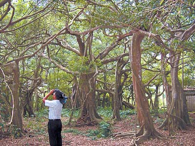 一棵榕树竟衍生出百多棵!记者在徐闻下桥镇金竹村看到,此榕“母生子”,“子生孙”,竟占了近3亩的地盘,形同一个小公园。问村民哪棵是主树,村民无不摇头。