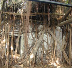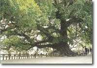 榕树――印度国树 榕树是一种印度无花果树。它的枝条可以在很大一片土地上落地生根,长起来后,就像新树一般。接着,新根又会生成更多的树干和枝条。榕树由于有这样的特点,兼之寿命很长,所以便被认为是永生不朽的,并且成为印度神话和传说中重要的组成部分。即使到了今天,榕树依然是乡村生活的中心所在。
