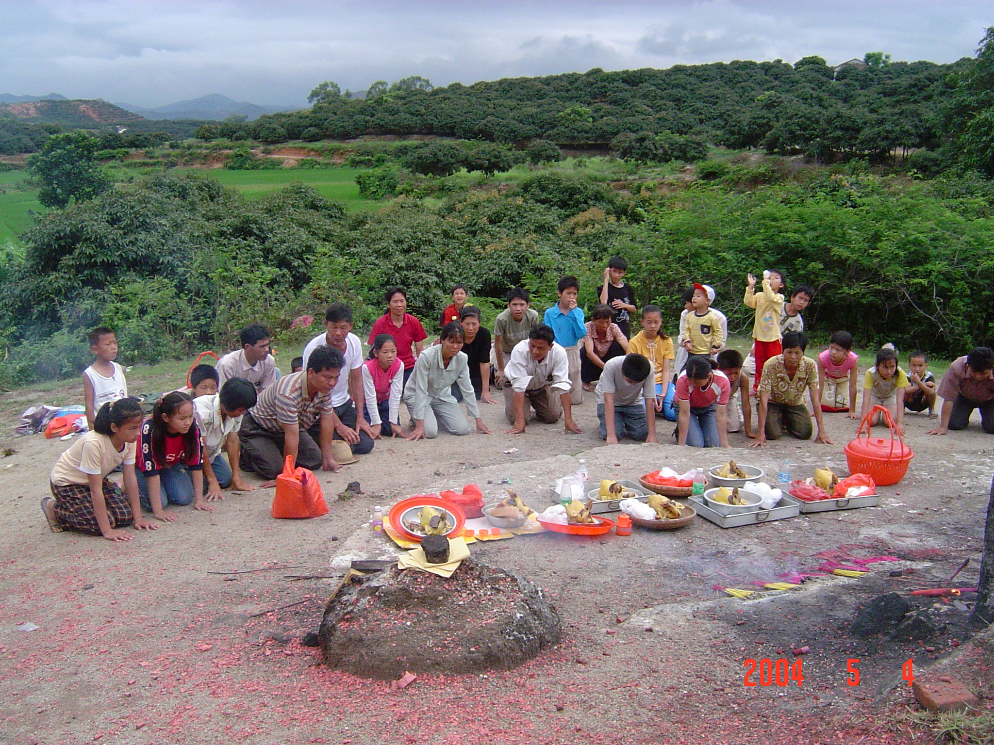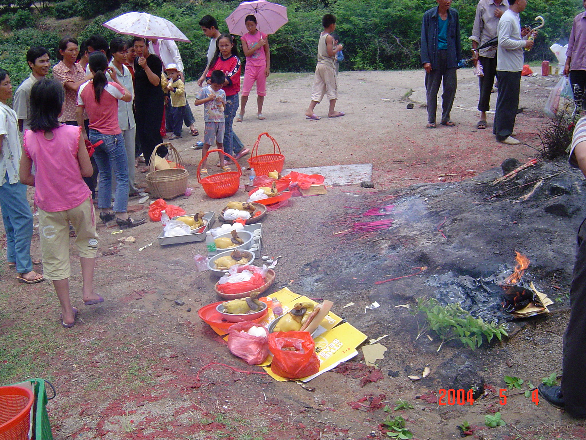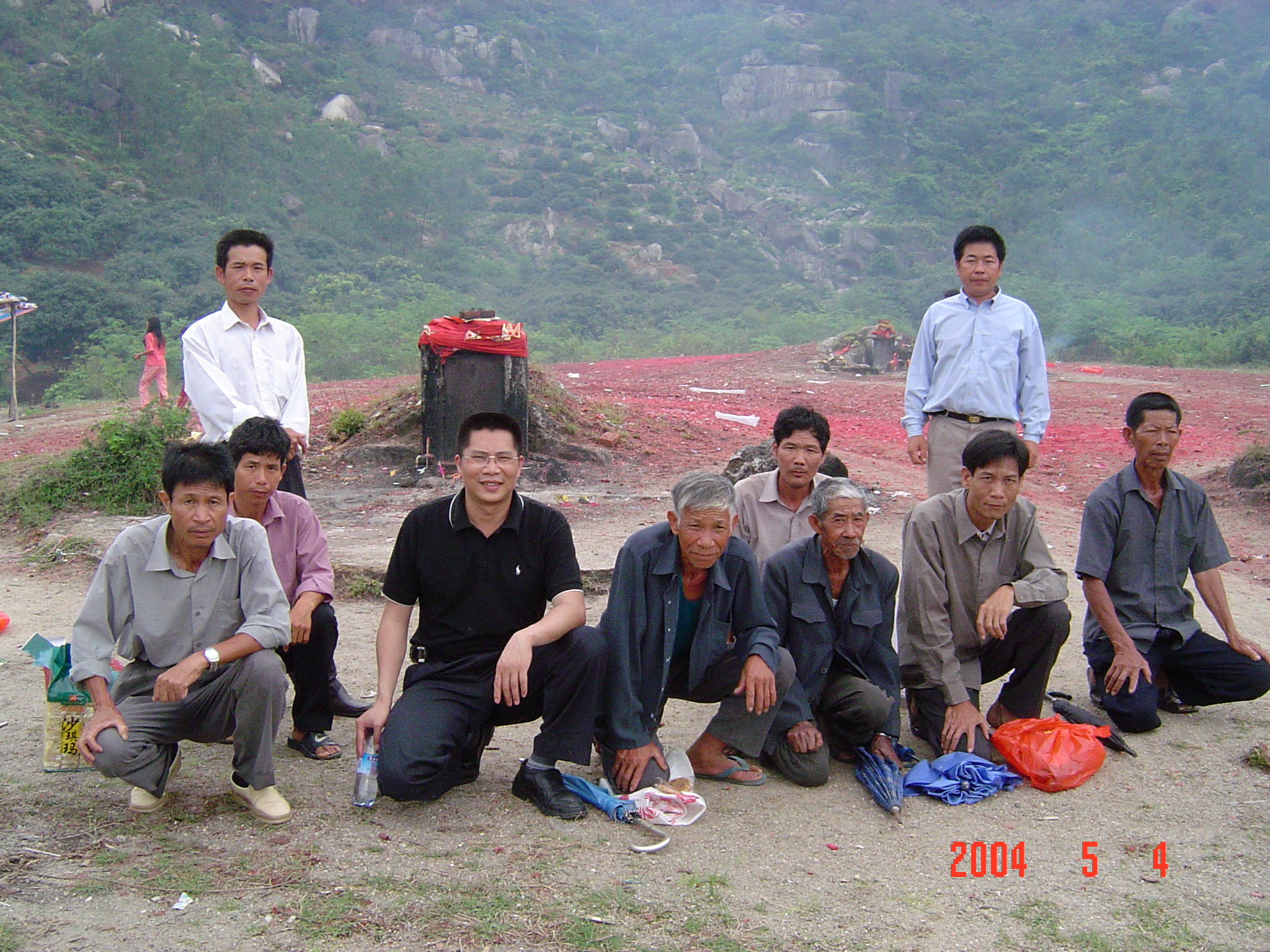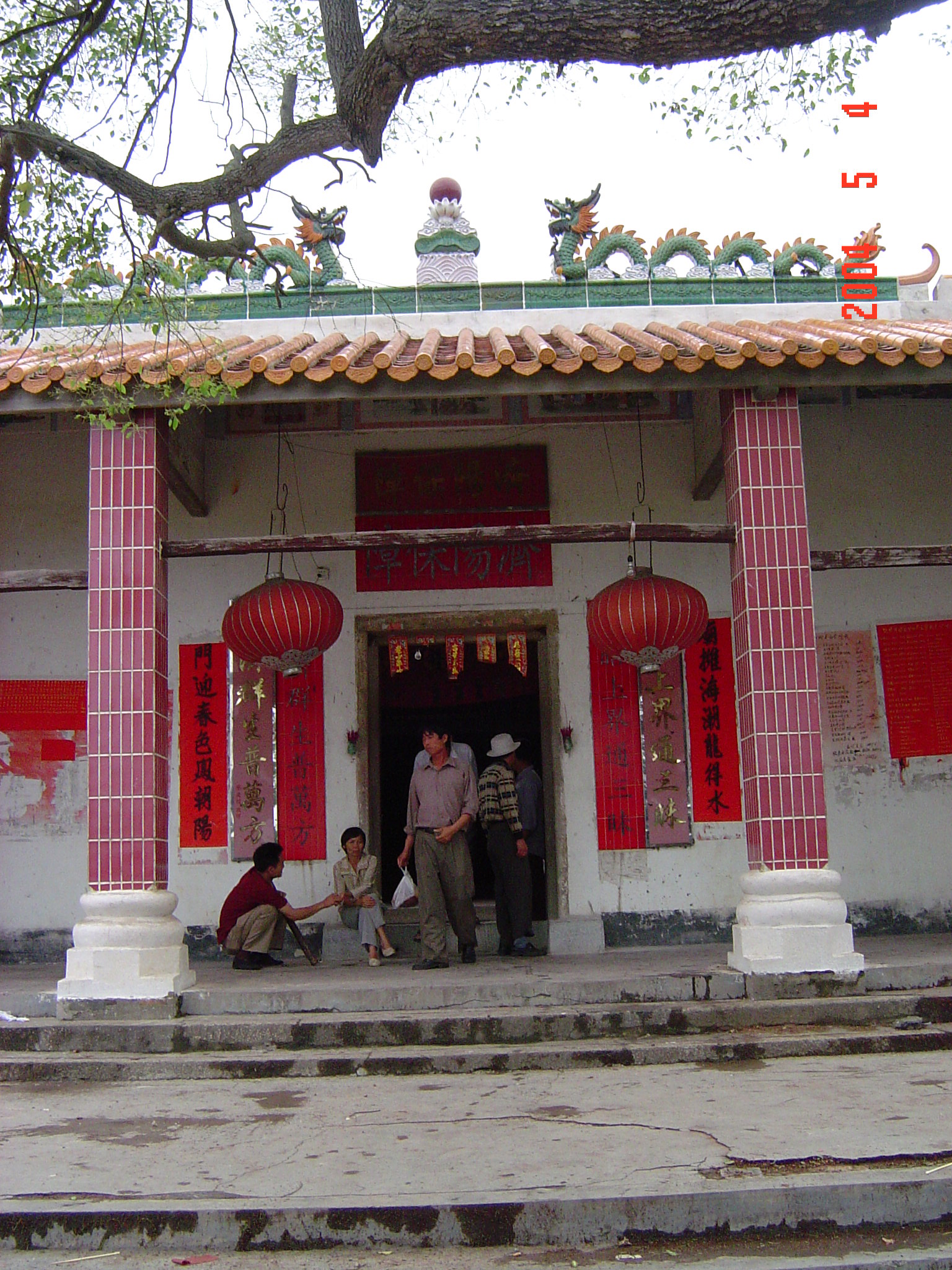 2004年5月4日,在电城镇P垌的宗祠前拍摄的侄女?或姑太?她们是从林头蔡家叔孙来P垌祭祖的.我不知她们的辈份.我是24世的.
