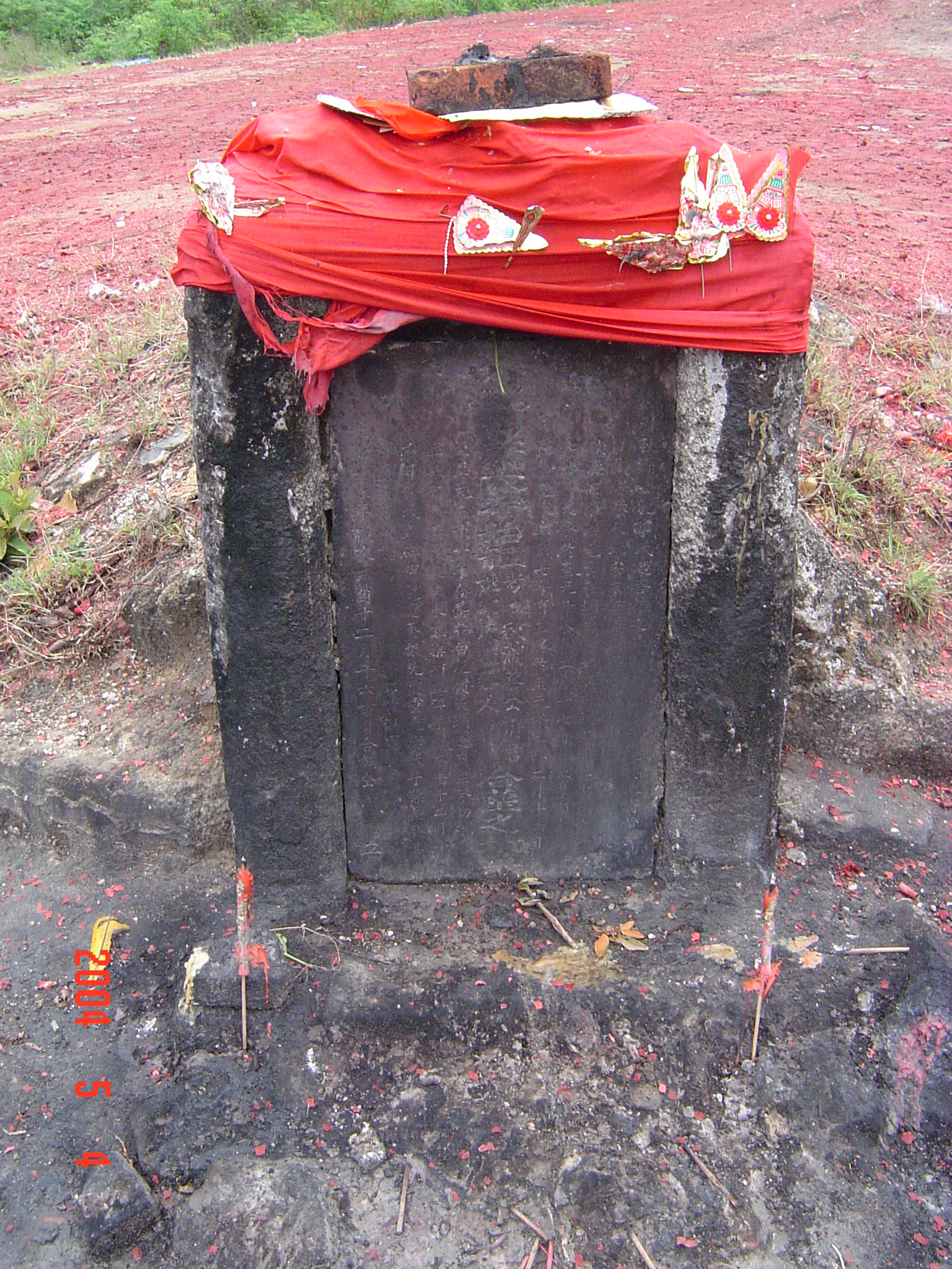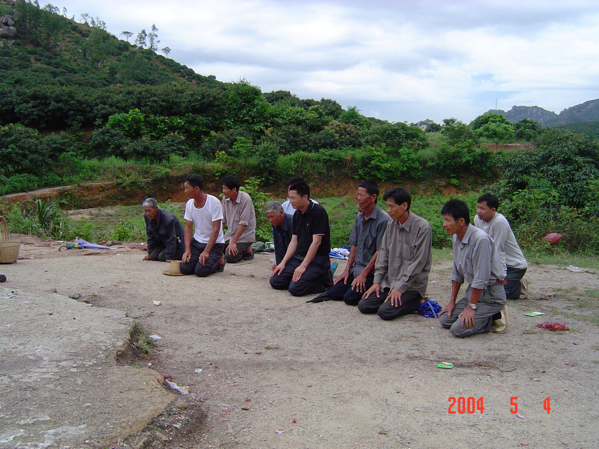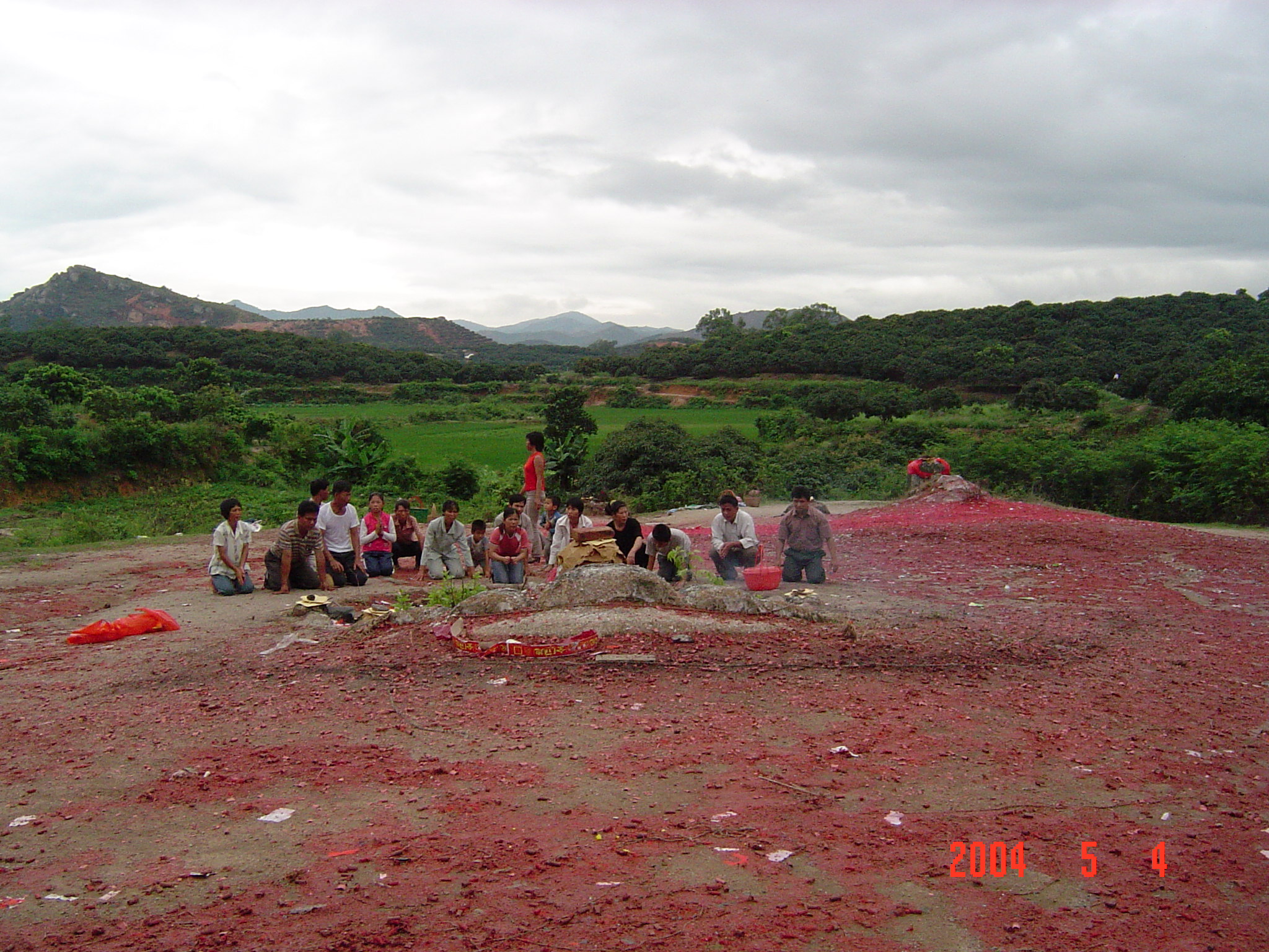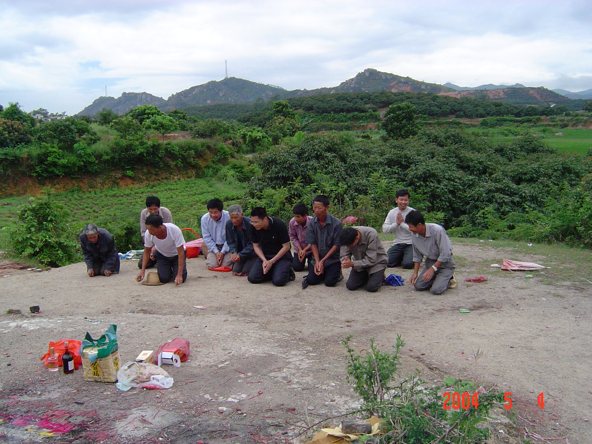 2004年5月4日,在电城镇P垌的宗祠前拍摄的侄女?或姑太?她们是从林头蔡家叔孙来P垌祭祖的.我不知她们的辈份.我是24世的.