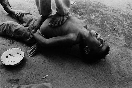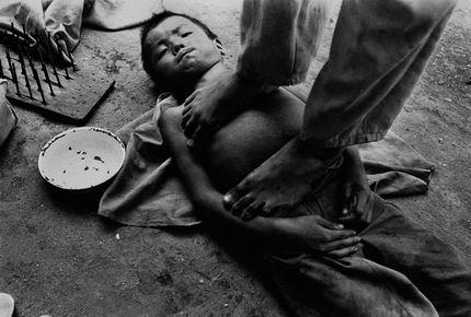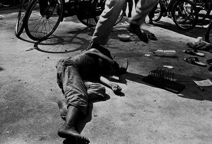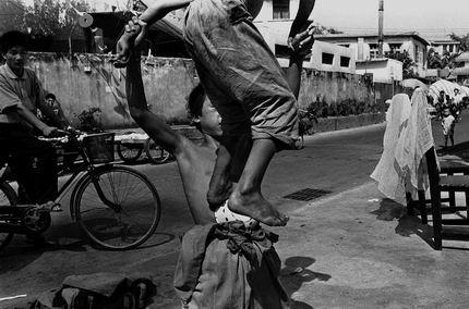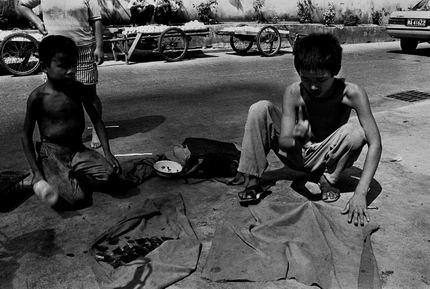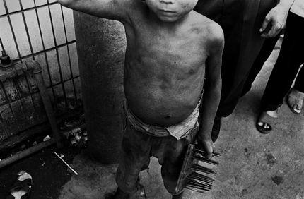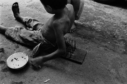 [转]社会最底层中的黑镜头。 孩子们在表演卧钉板,为了增加节上的危险程度,无知的孩子们还不时地在对方身上踩过。孩子要忍受受伤的疼痛。