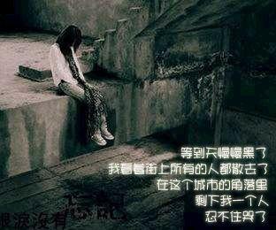 等到天慢慢黑了 我看着街上所有的人都散去了 在这个城市的角落里 剩下我一个 忍不住哭了 真的累了 很多很多的事情不敢面对 总想有个依靠 前面真的很迷茫 伸出手却什么也抓不住 有人说 每个女孩的心中都有一个白马王子 我并不想奢求什么 只想要一个肩膀 受伤的时候能够依靠 直到现在 一个人哭一个人笑