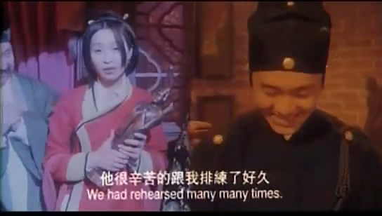 (“呛啷”一声宝剑落地,紫霞感动得泪流满面。)