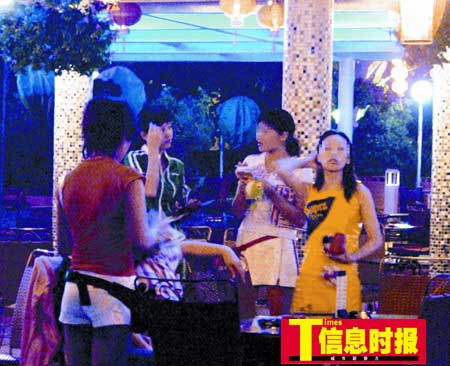 “肯定会被客人摸摸碰碰啦,这是不可避免的嘛!”场内的一名服务员说,啤酒妹被人动手动脚是很正常的事,有的客人见到漂亮的啤酒妹会拼命追求,甚至会提出外出过夜的非分要求。