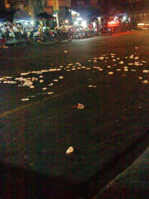 鄙视一些严重占道经营的果农果商经营者..现场留下与过后不收拾好大量果皮纸碎等杂物的不负责任行为