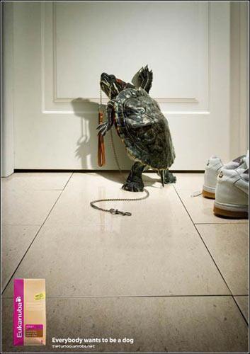 为了Eukanuba它也想成为一条狗(Eukanuba是宠物用品品牌)。