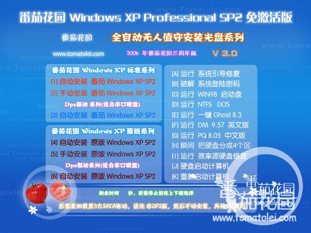 === 番茄花园 Windows XP Pro SP2 免激活 V 3.0 ===